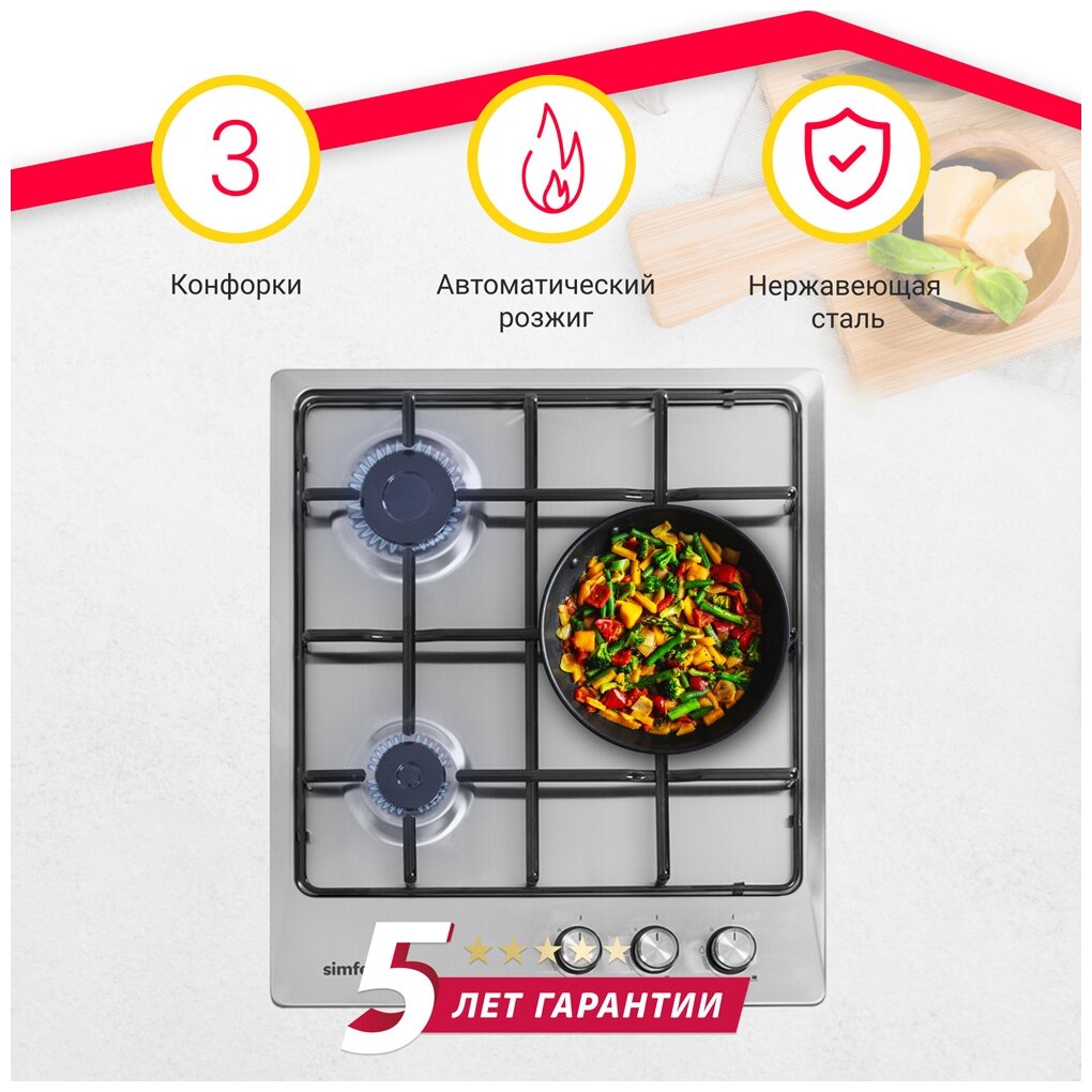 Газовая варочная панель Simfer H45V30M411, независимая, нержавеющая сталь