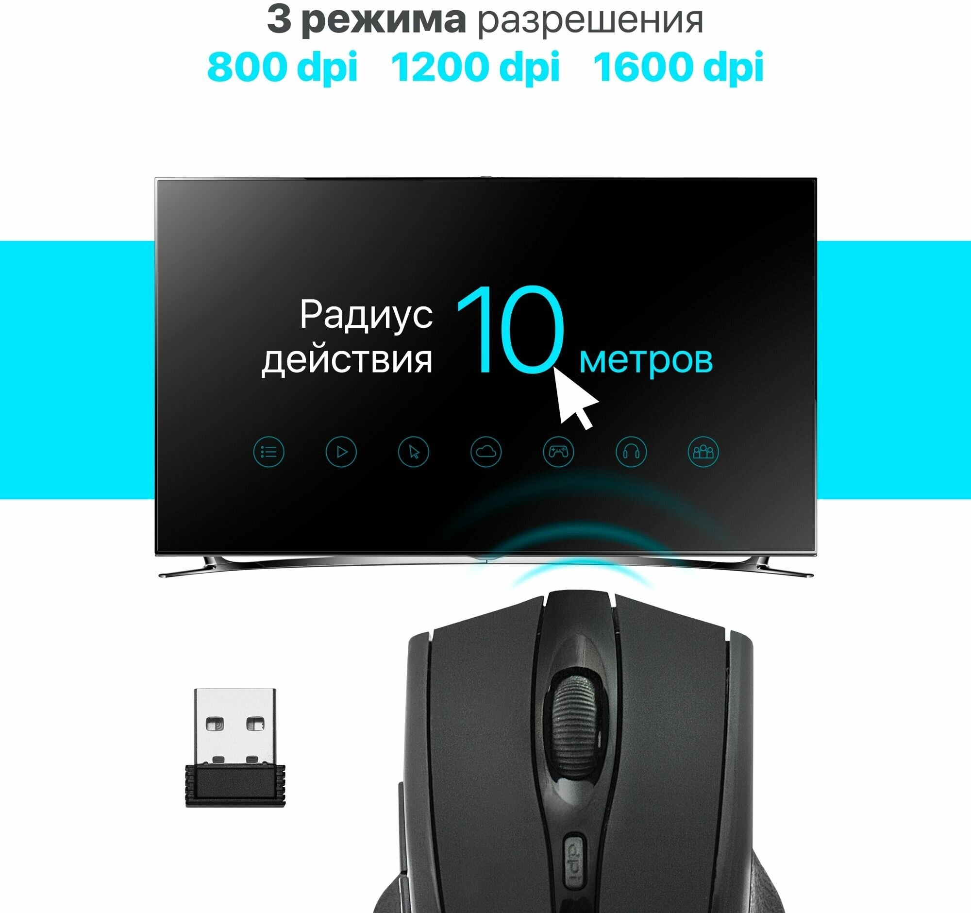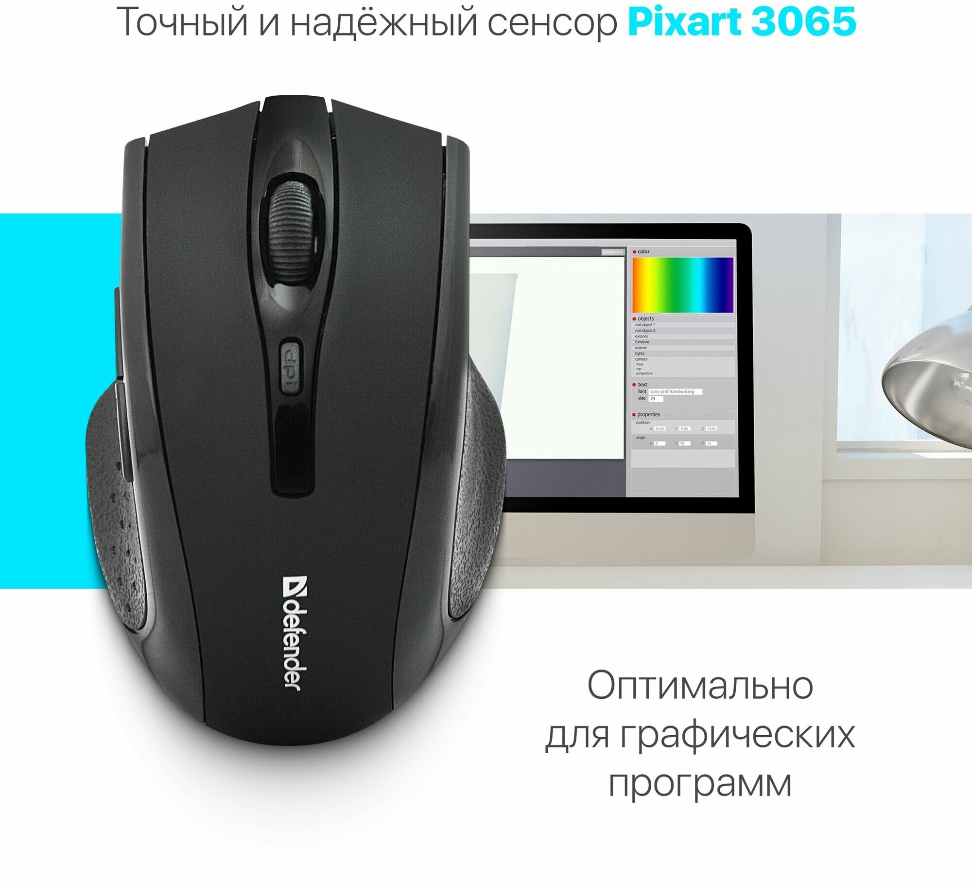 Беспроводная оптическая мышь Defender Accura MM-665 черный, 6 кнопок, 800-1600 dpi