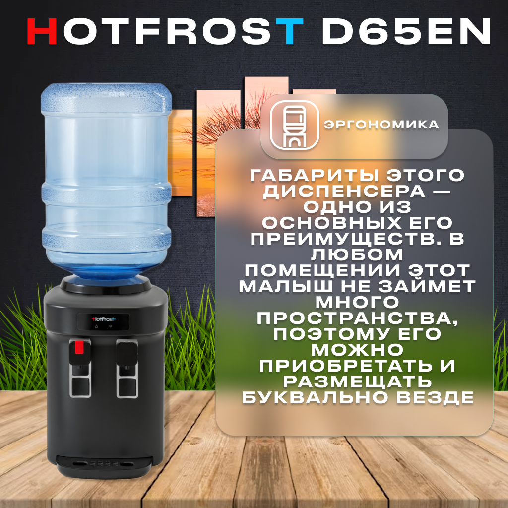 Кулер для воды HOT FROST D65EN, настольный, нагрев/охлаждение электронное, 2 крана, черный, 110206501