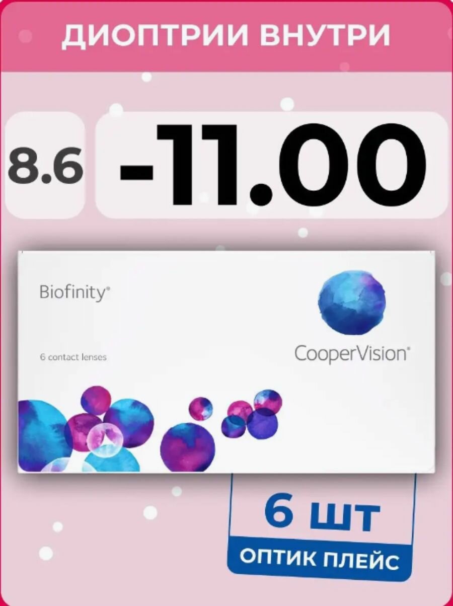 Контактные линзы CooperVision, Biofinity, 6 линз I 8.6 I -11.00 I ежемесячные I прозрачные