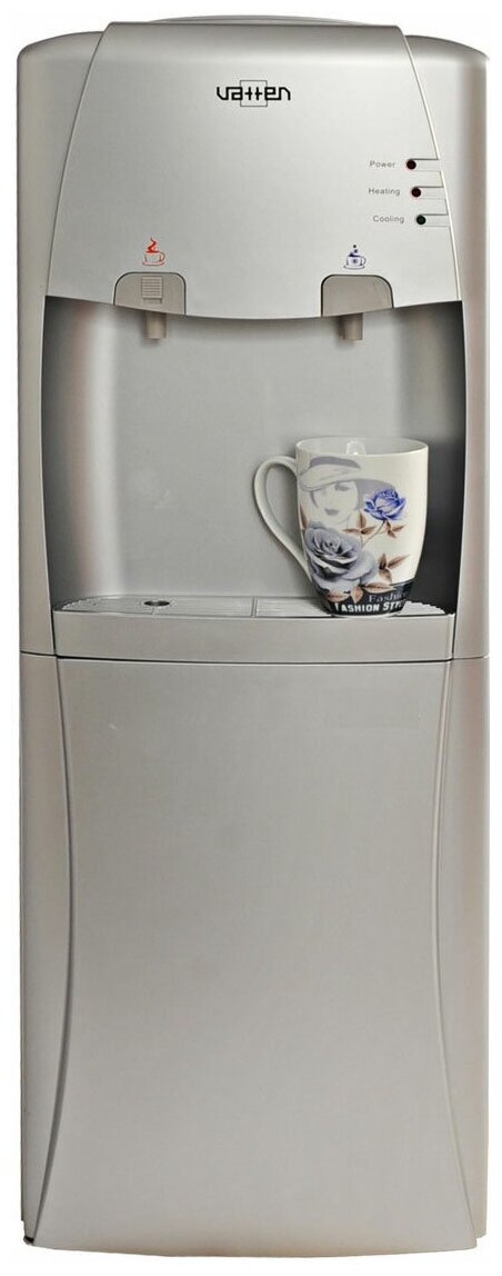 Кулер для воды Vatten V15SKA компактный, напольный, с шкафчиком, компрессорное охлаждение и нагрев, серебристый