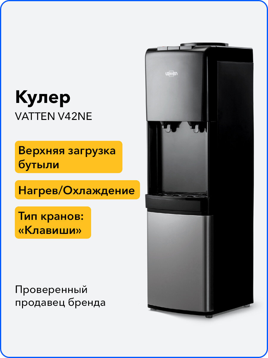 Кулер VATTEN V42NE, напольный, электронный, кнопка, черный/серебристый [3578]