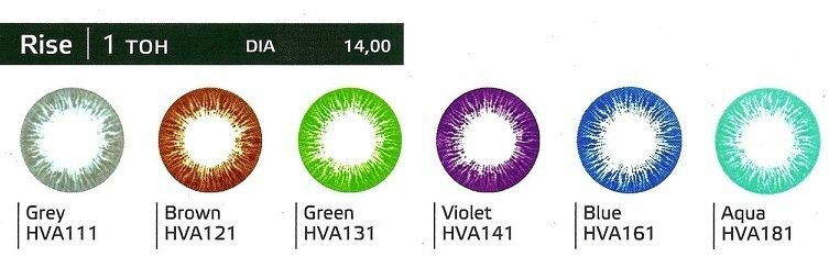 Контактные линзы цветные оттеночные., HERA.,Rise Aqua (однотоновая)., Квартальные (3 месяца) 2 линзы -1.0
