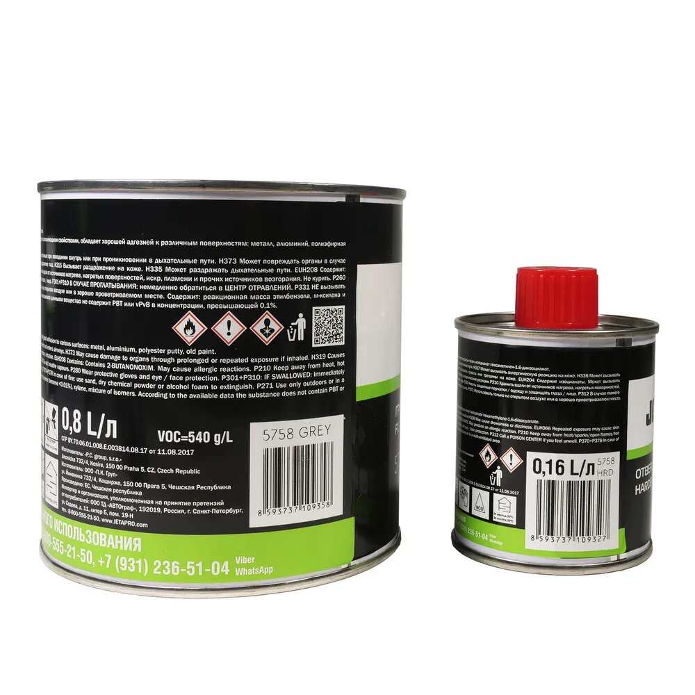 Грунт наполнитель + отвердитель акриловый 5 к 1 Jeta Pro, серый, 0,8л+0,16л интересное: