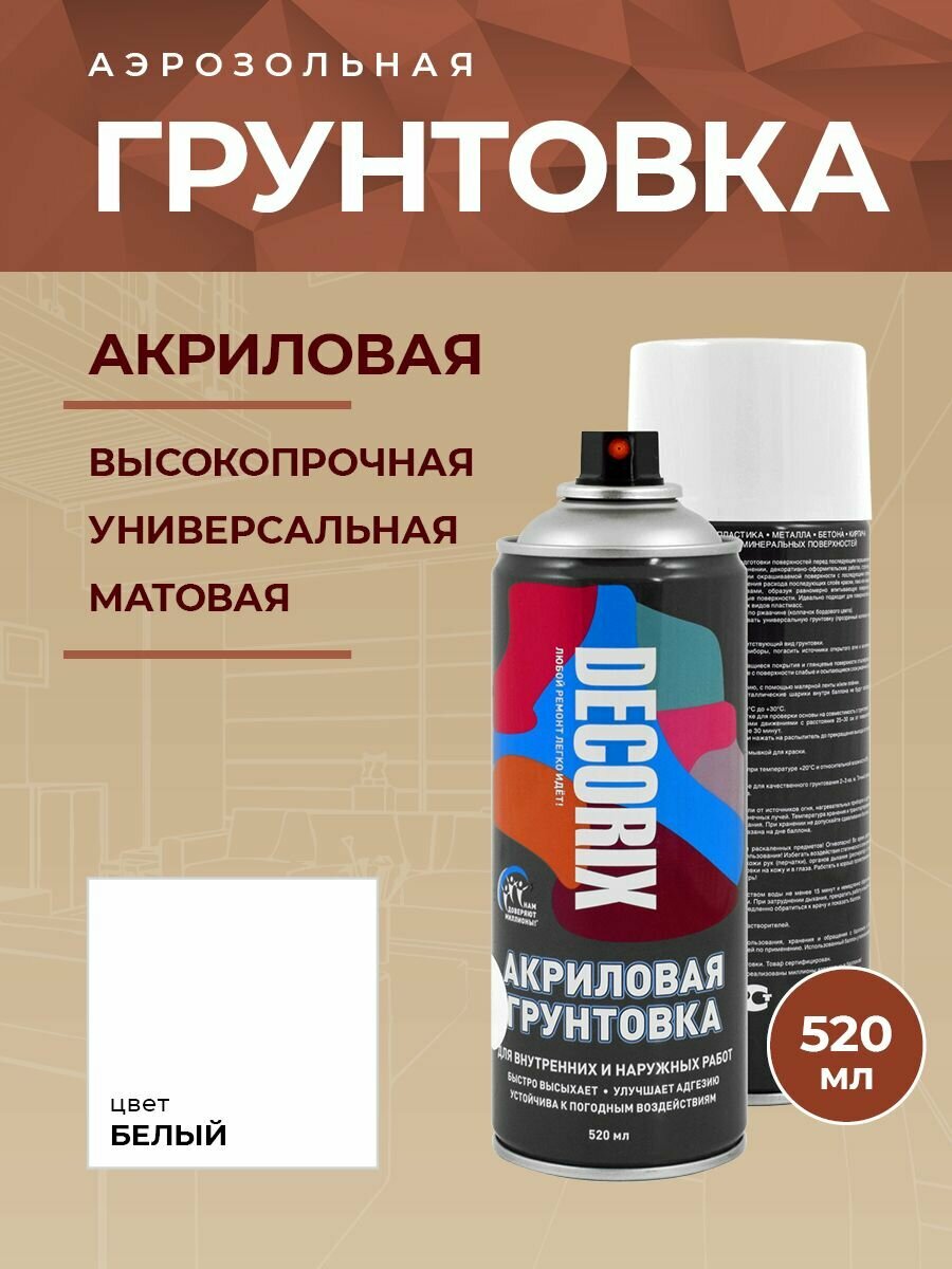 DECORIX Грунтовка акриловая 520 мл, в аэрозольном баллоне, цвет Белый интересное: