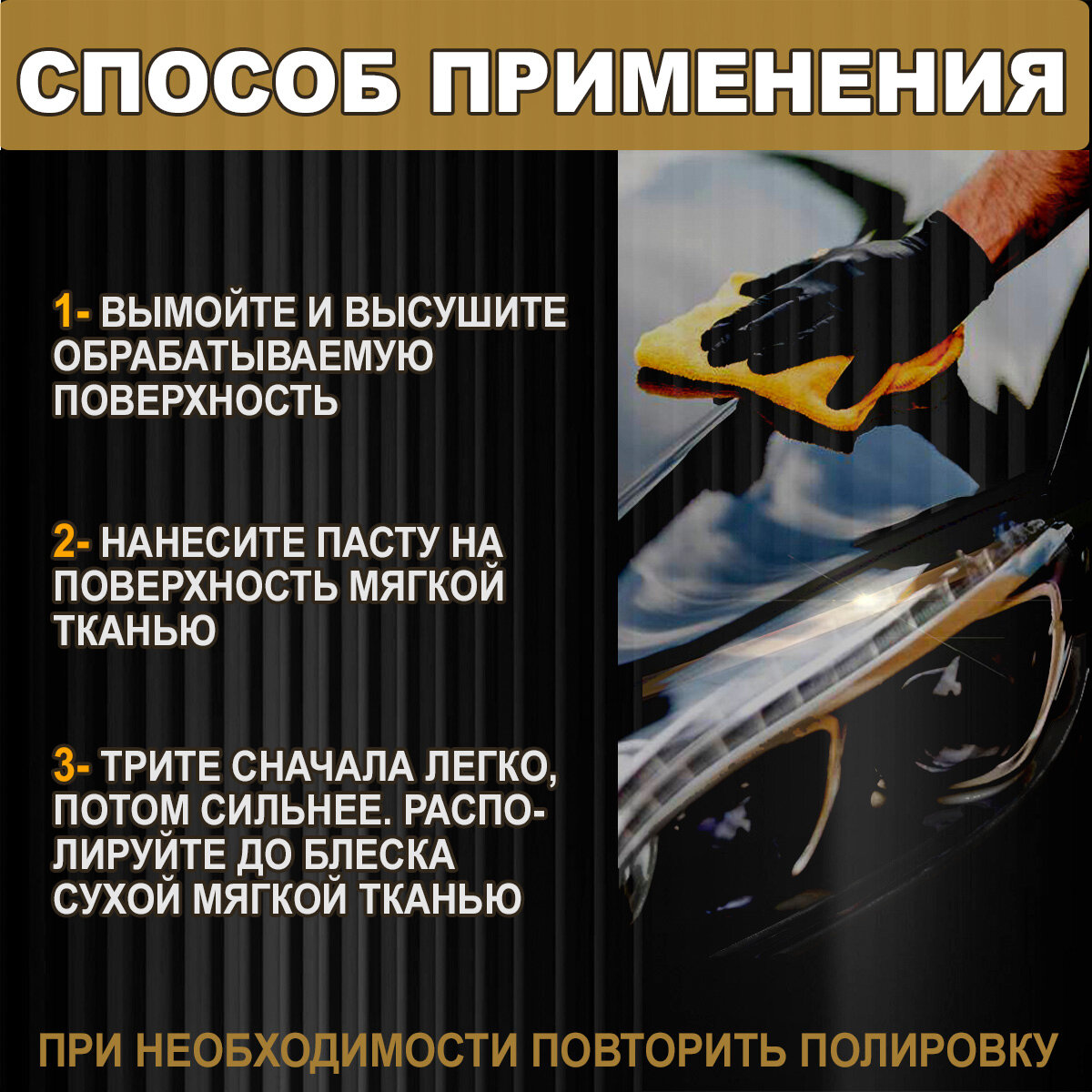 | Дополнительная информация | Паста применима как для ручной, так и машинной полировки |