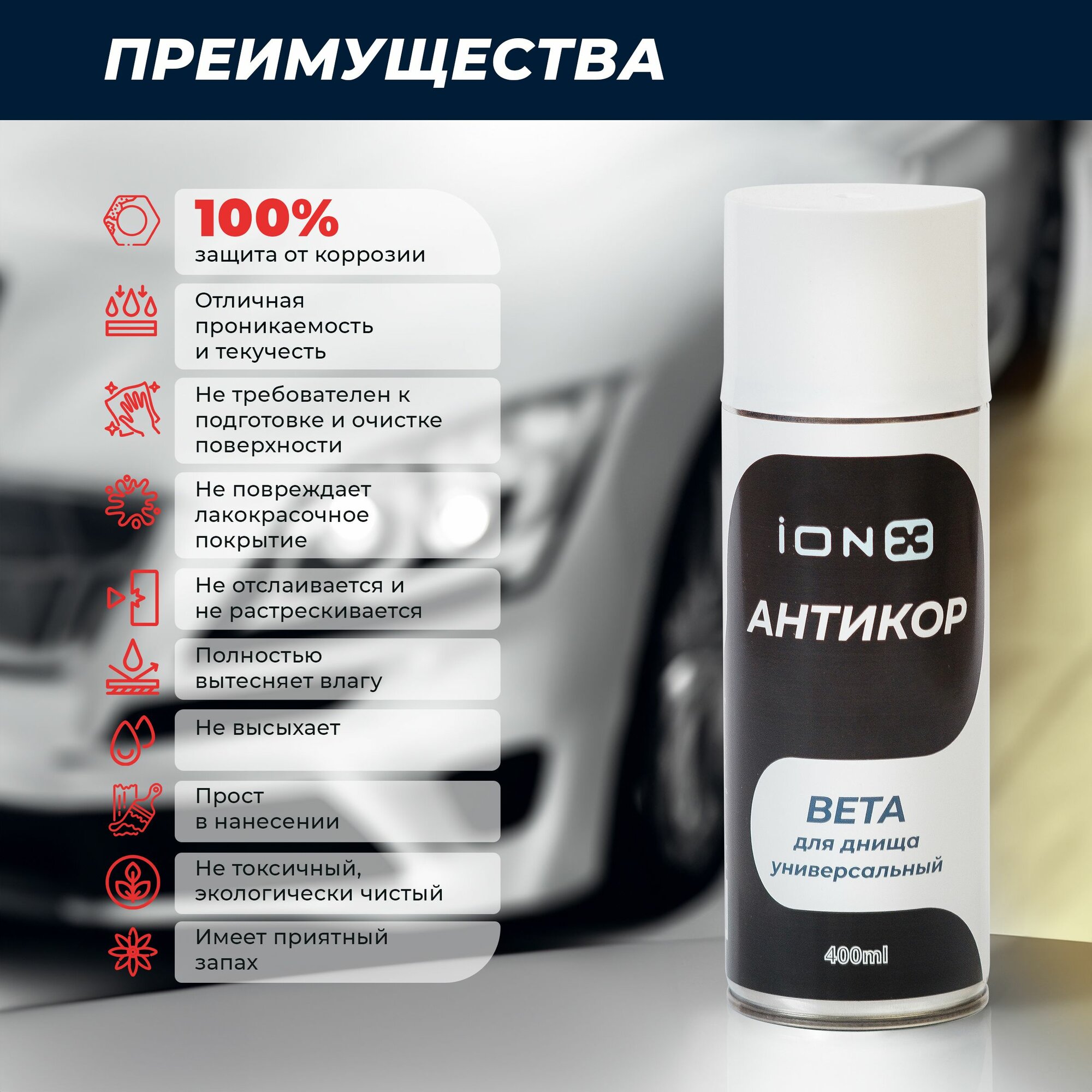 Антикор от ржавчины ионикс Бета для днища, автомобильное антикоррозионное покрытие iONX Beta, аэрозоль 400 мл, Аналог раст стоп