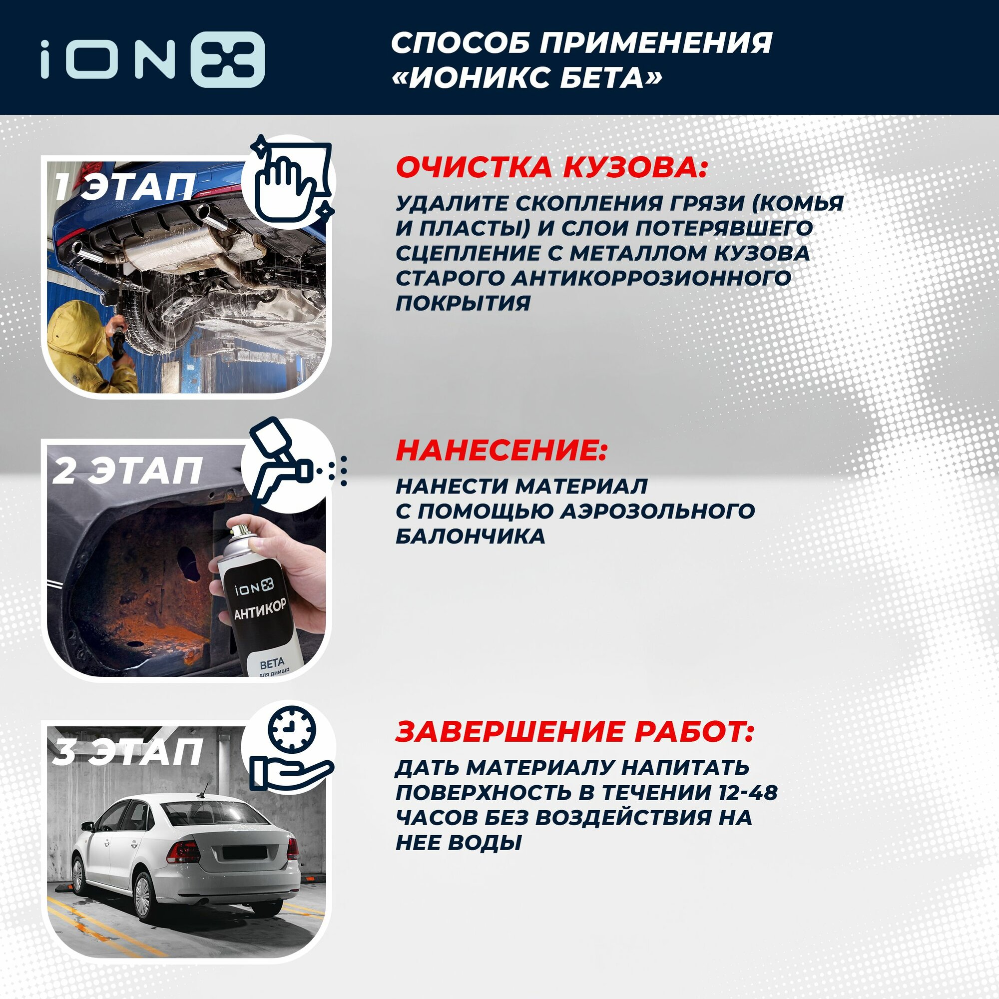 | Область применения | дно / колесные арки / корпус / моторный отсек / пороги / скрытые полости |