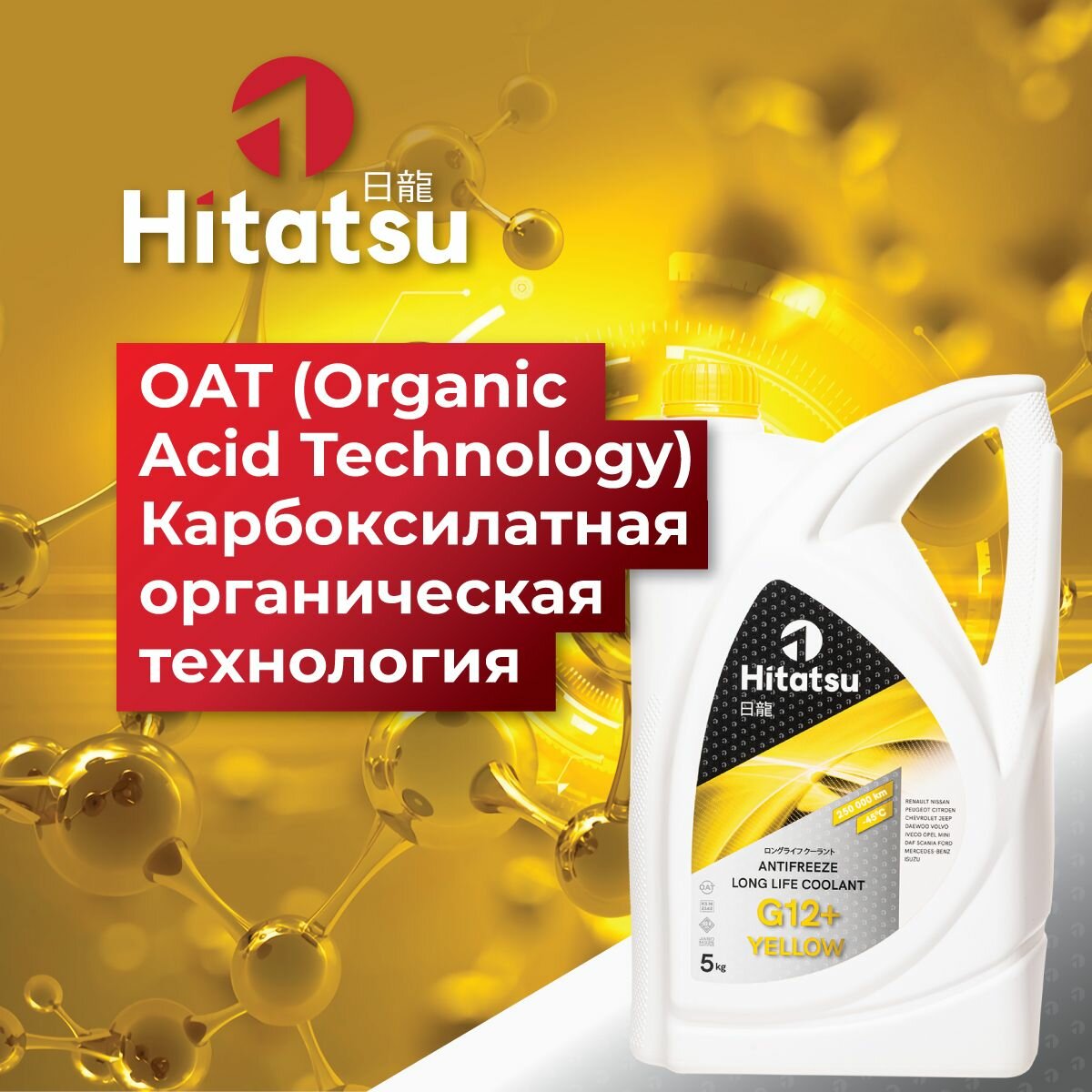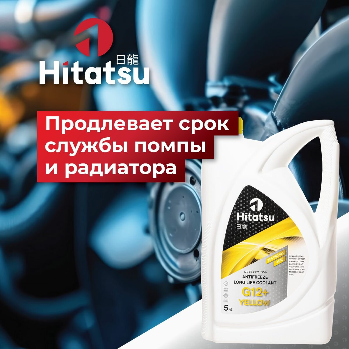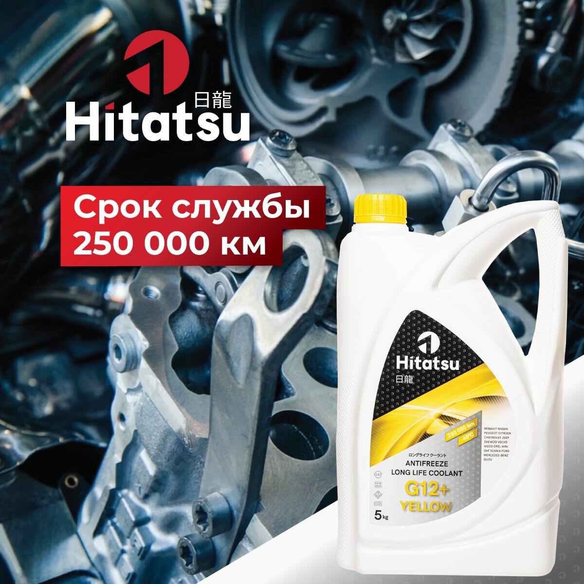 Антифриз Hitatsu G12+ Long Life Coolant, -45C, желтый, 5кг интересное: