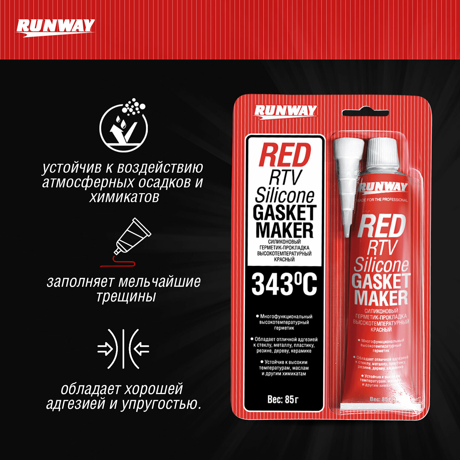 Купить Силиконовый герметик прокладка высокотемпературный, красный,85г / RUNWAY / RW8500