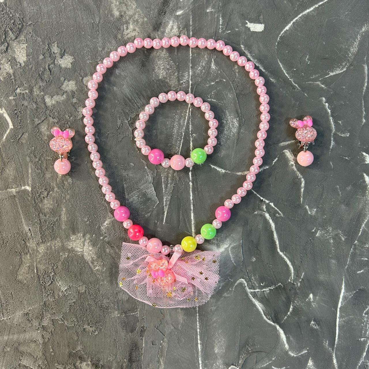Комплект украшений для девочки, розовый, мультиколор. Бусы, браслет,серьги-клипсы интересное: