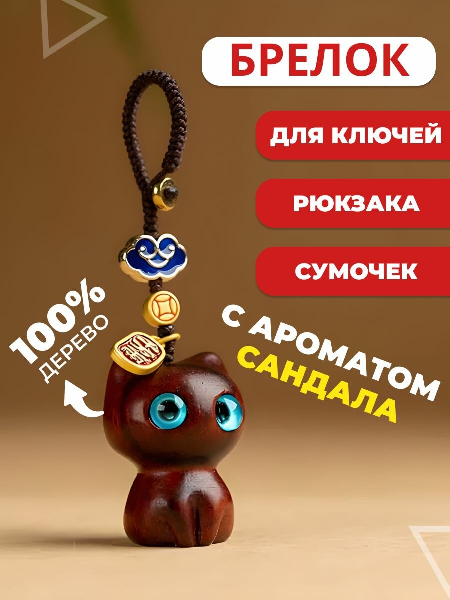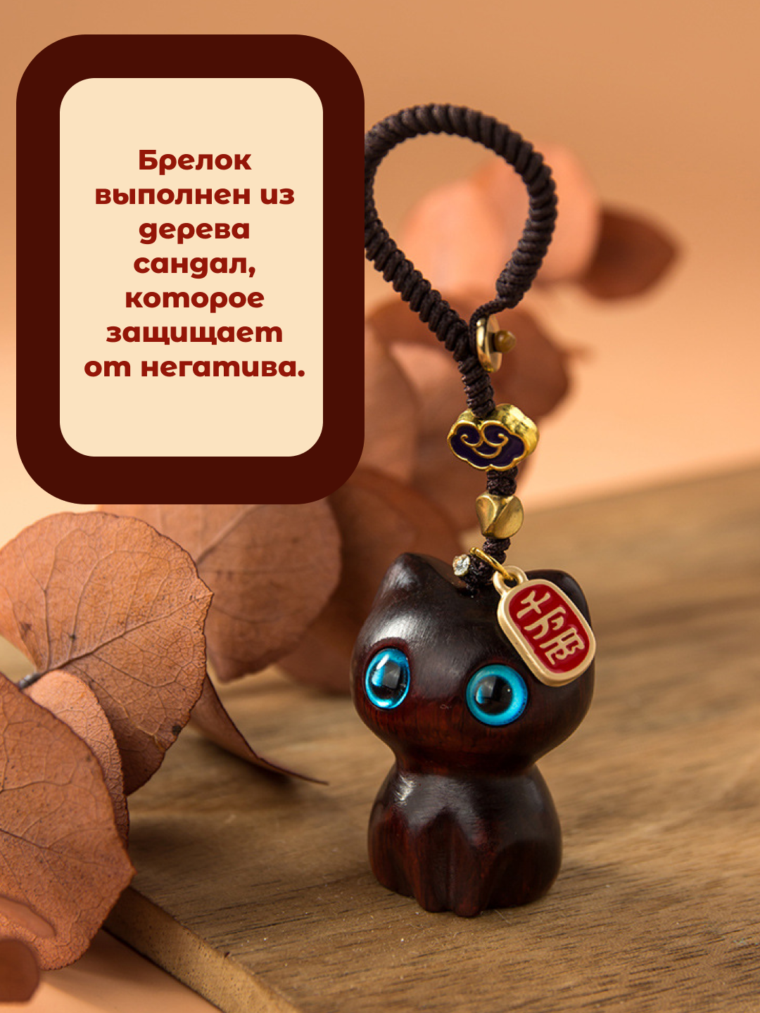 Котенок из сандалового дерева с голубыми глазками - брелок-оберег интересное: