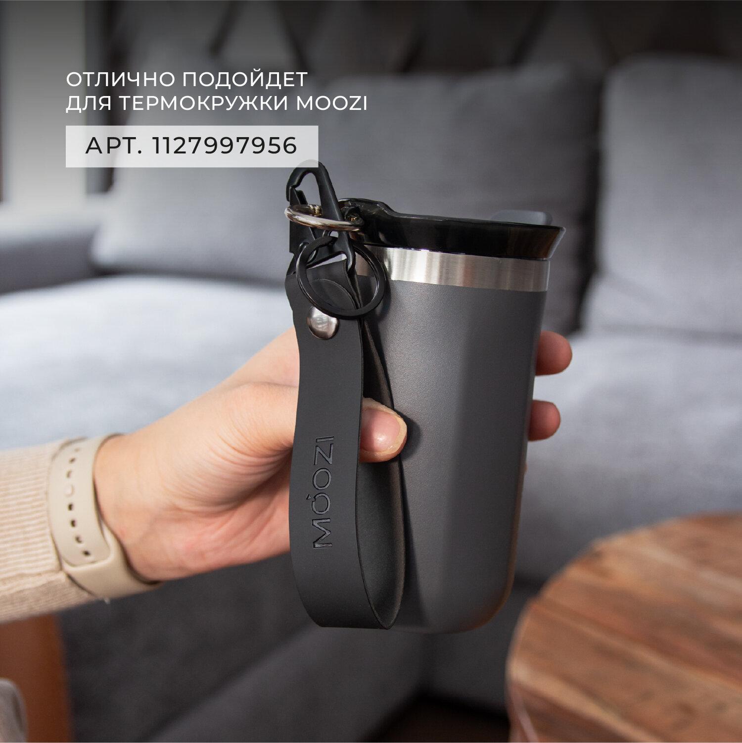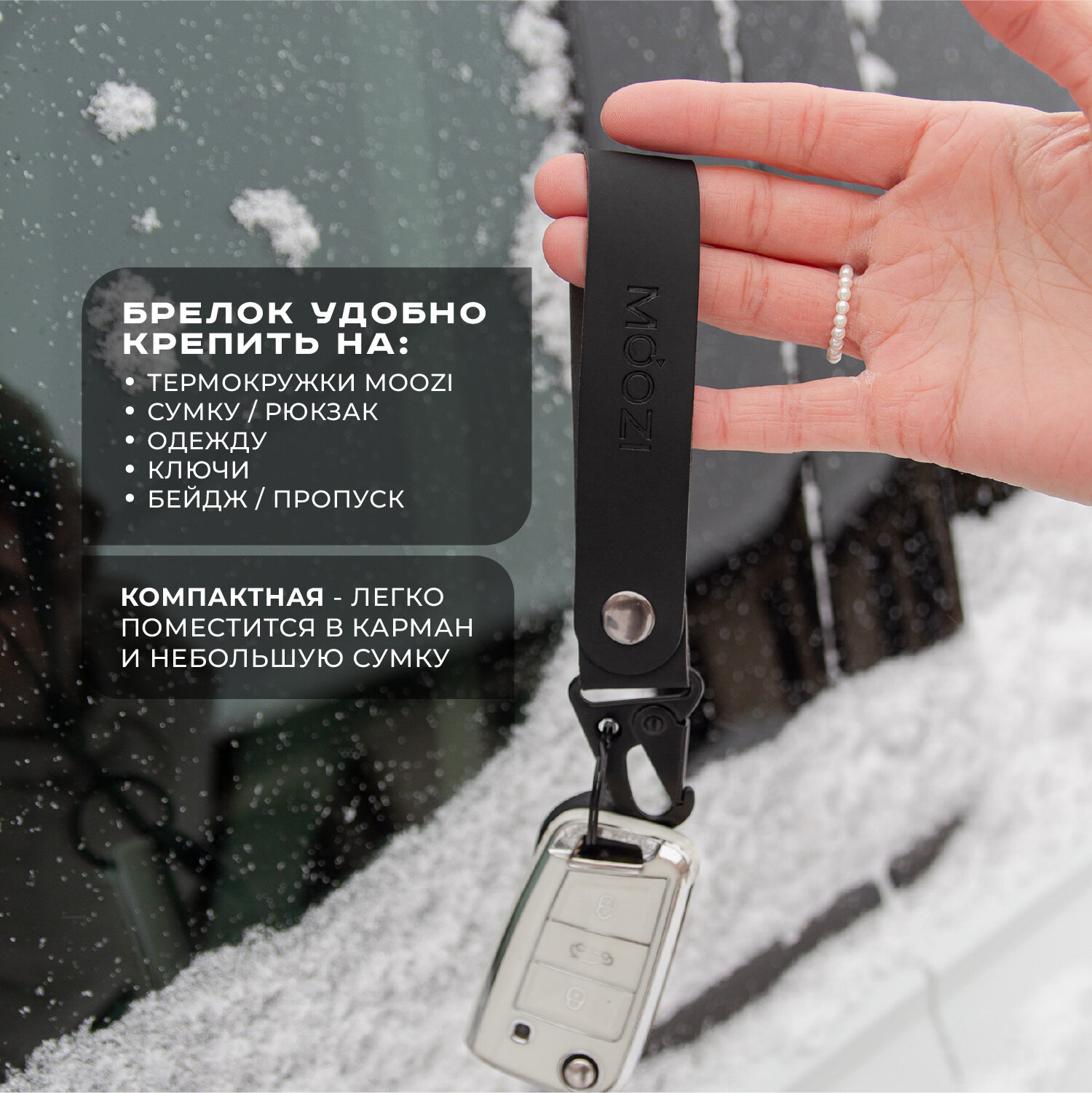 Купить Брелок ремувка на карабине с кольцом для термокружек MOOZI, цвет черный