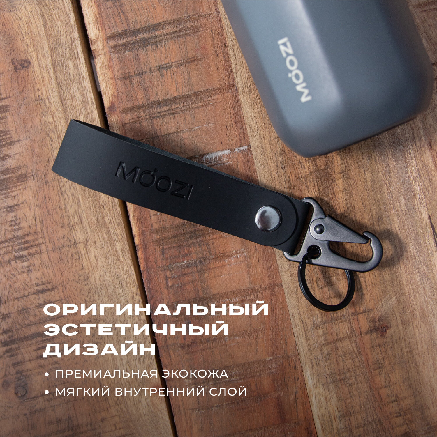 Брелок ремувка на карабине с кольцом для термокружек MOOZI, цвет черный интересное: