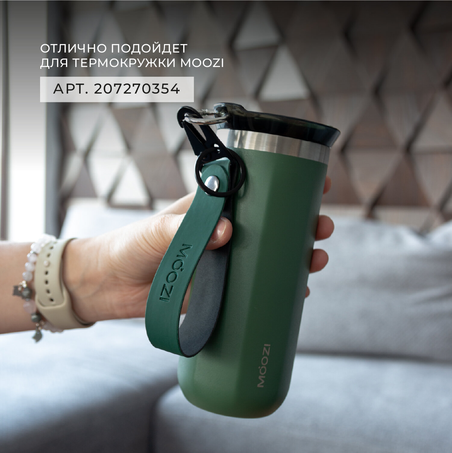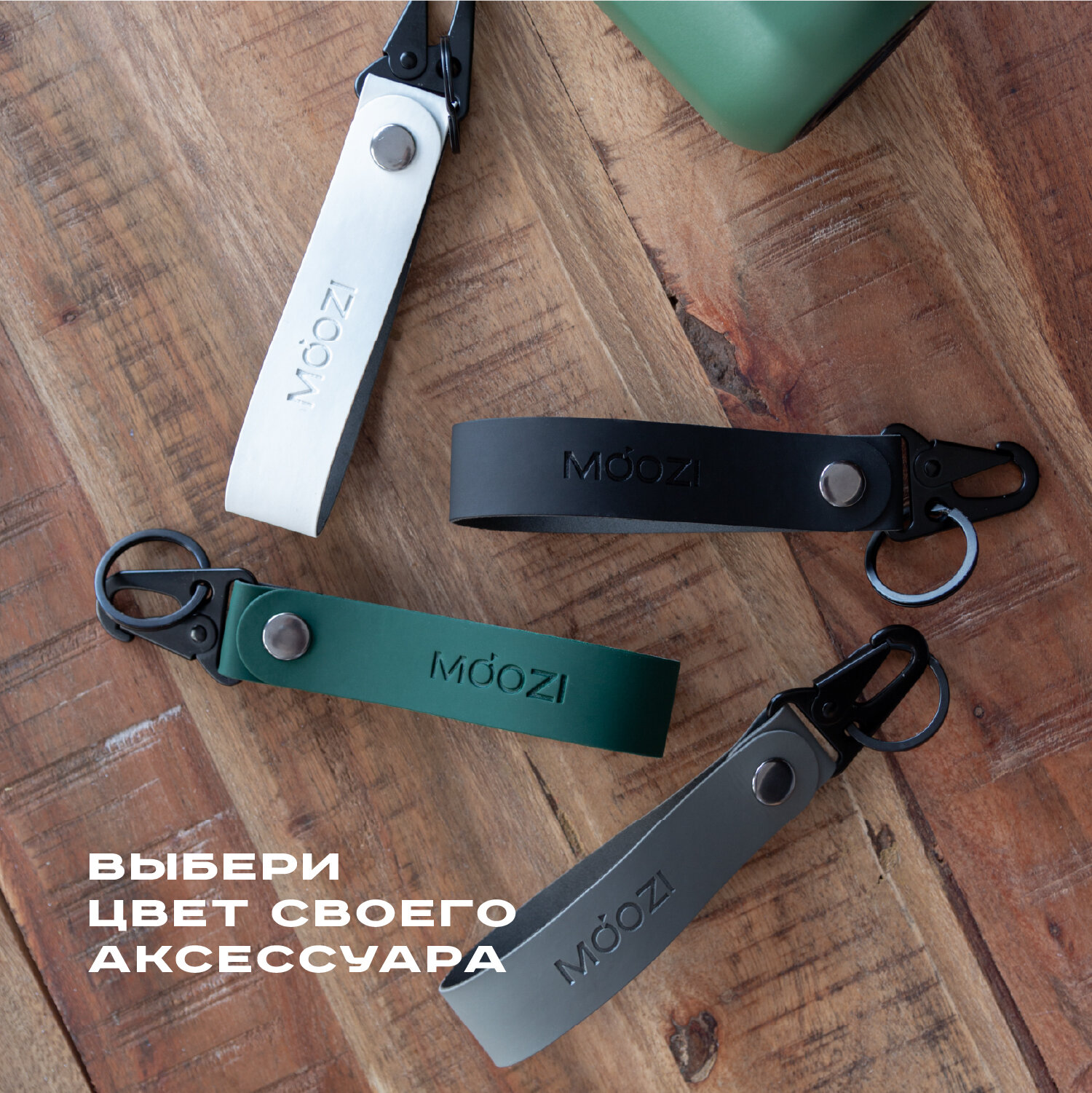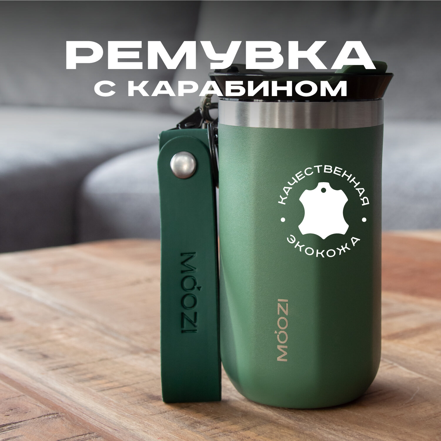 Брелок ремувка на карабине с кольцом для термокружек MOOZI, цвет зеленый интересное: