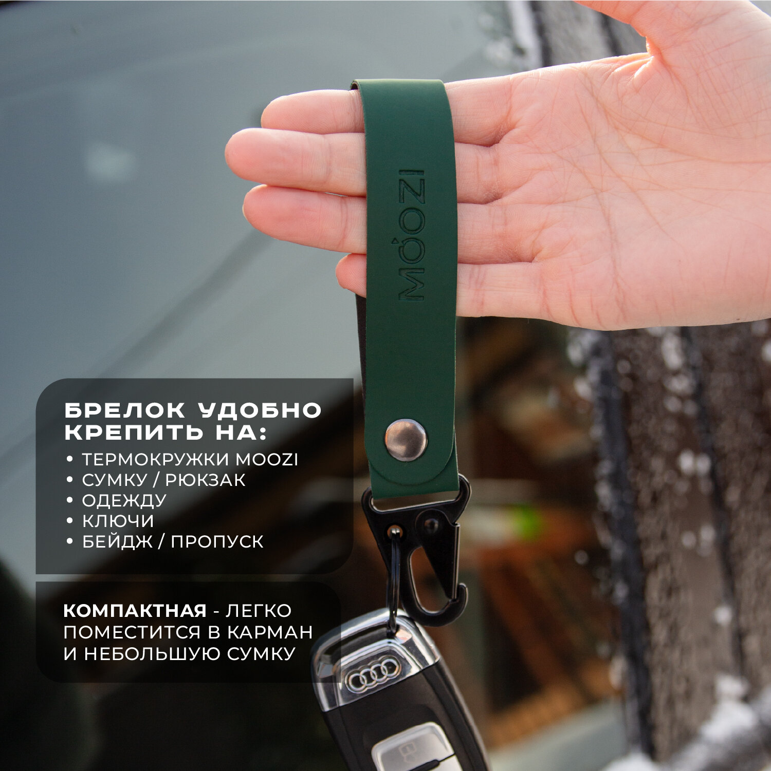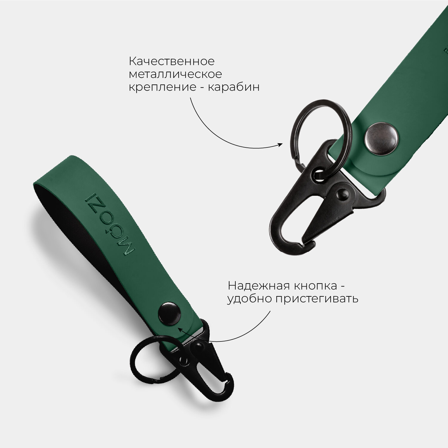 Купить Брелок ремувка на карабине с кольцом для термокружек MOOZI, цвет зеленый