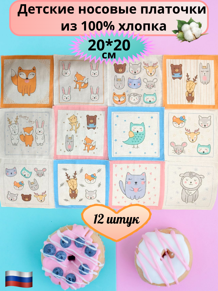 Набор детских носовых платков 12 шт, хлопок 100%, интересное: