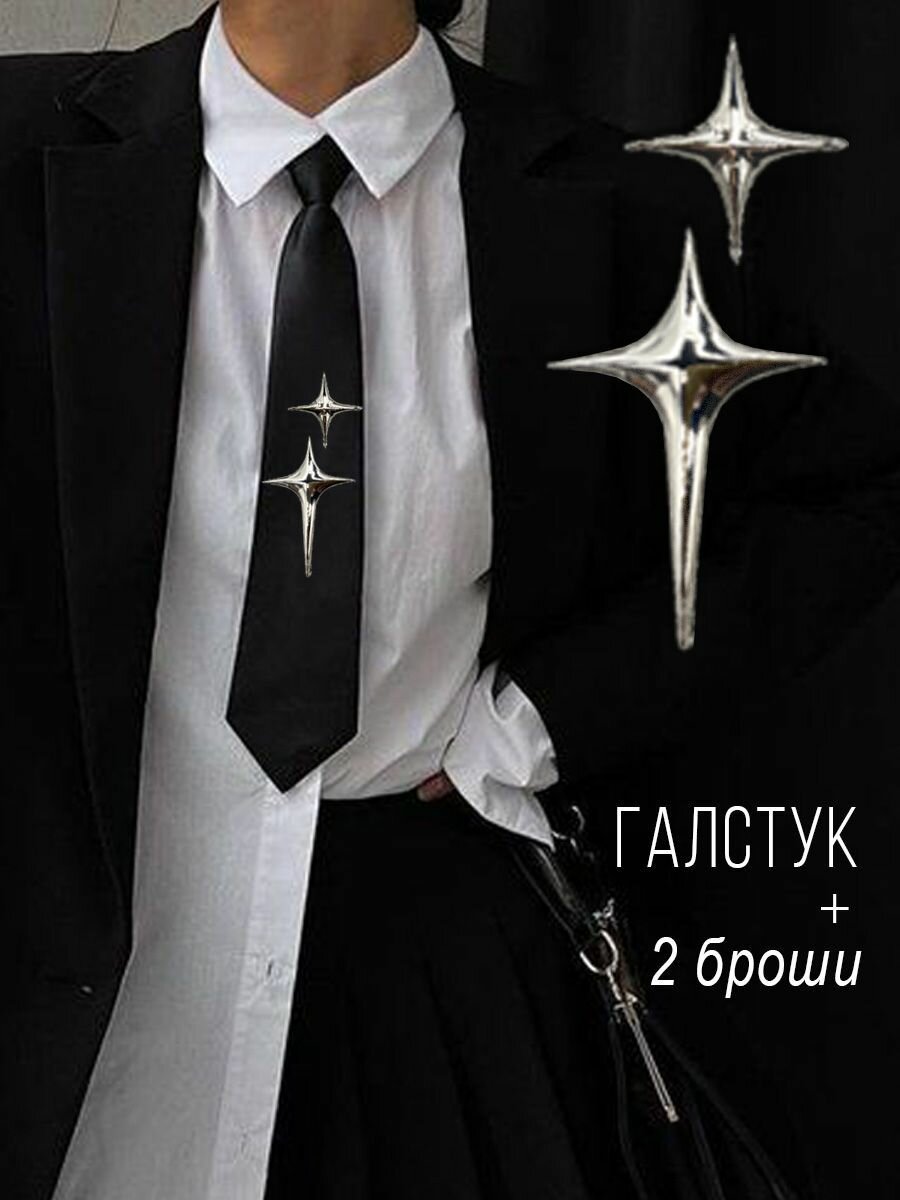 Галстук на резинке черный матовый с декором 2 Звезды интересное: