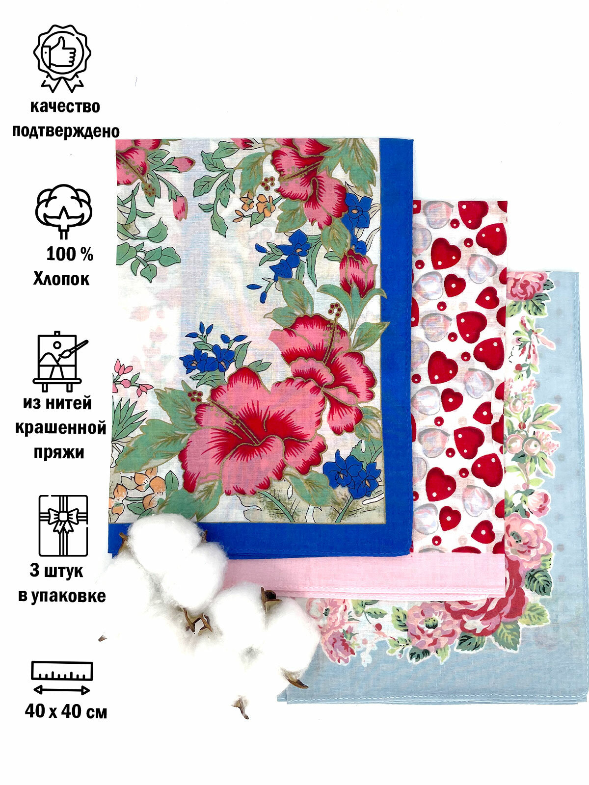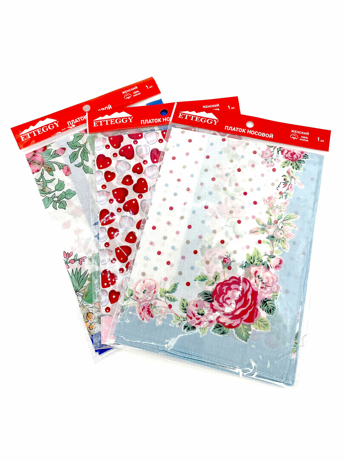 Набор носовых платков 3 шт. женских 100% хлопок интересное: