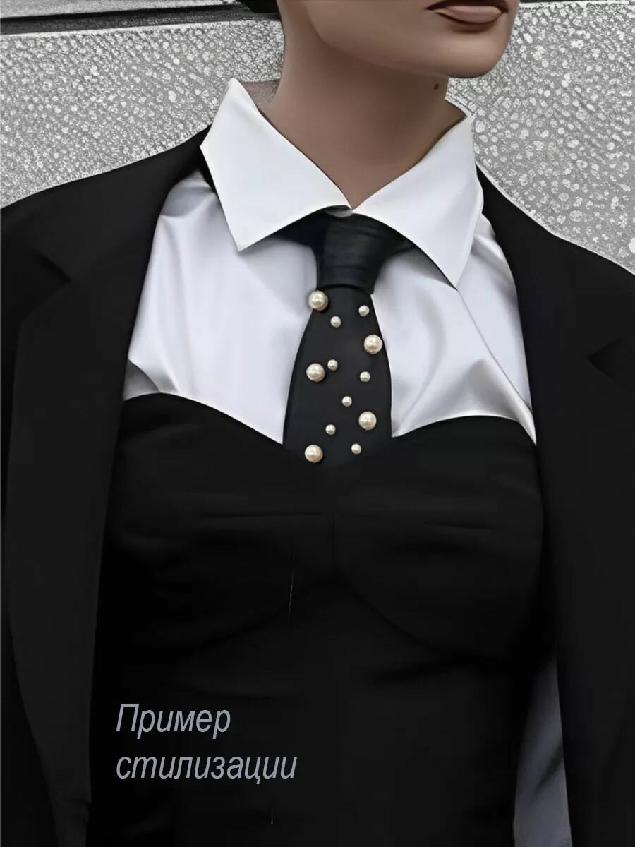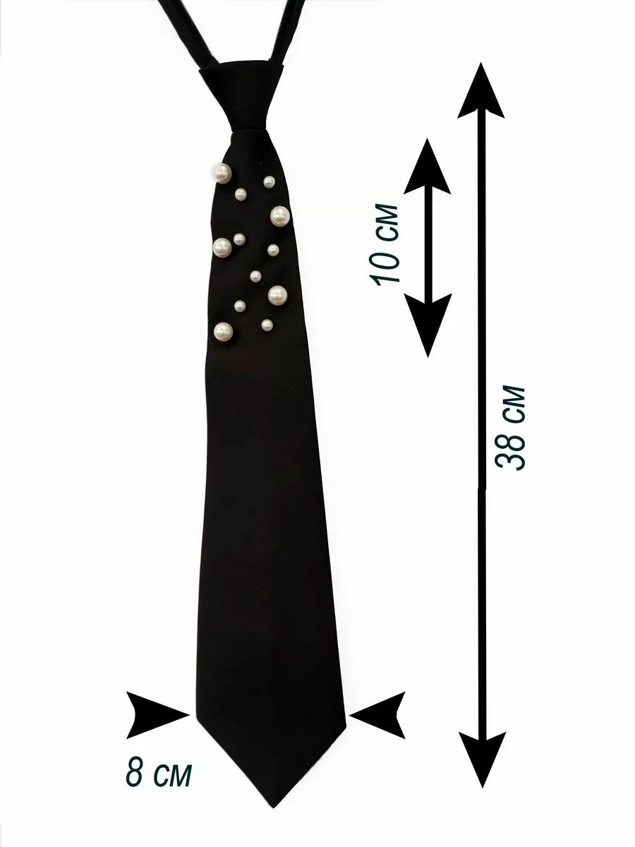 Галстук на резинке черный матовый с жемчугом интересное: