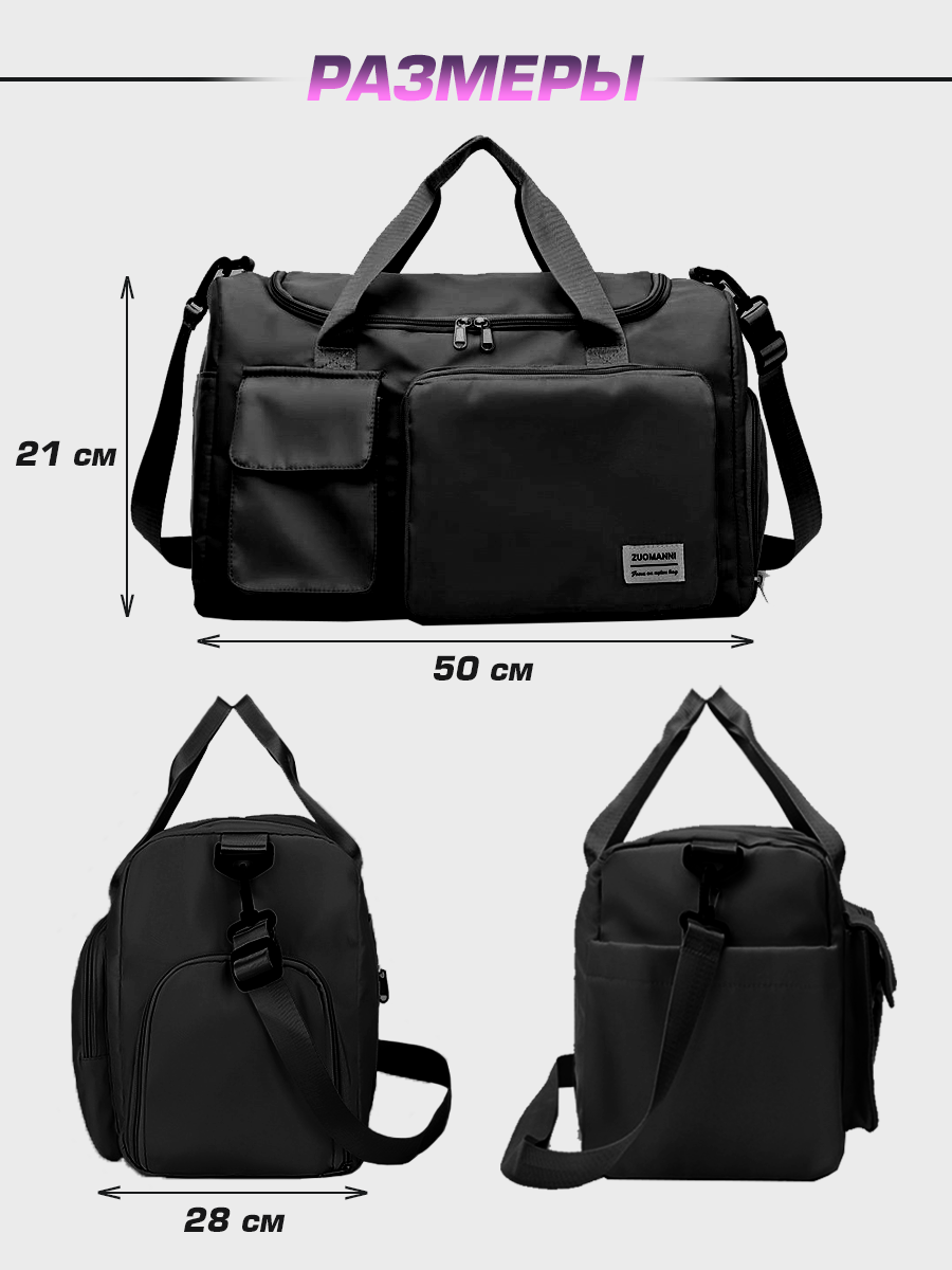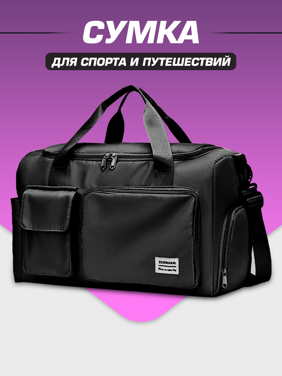 | Артикул | Сумка дорожная-спортивная с карманами чёрная |