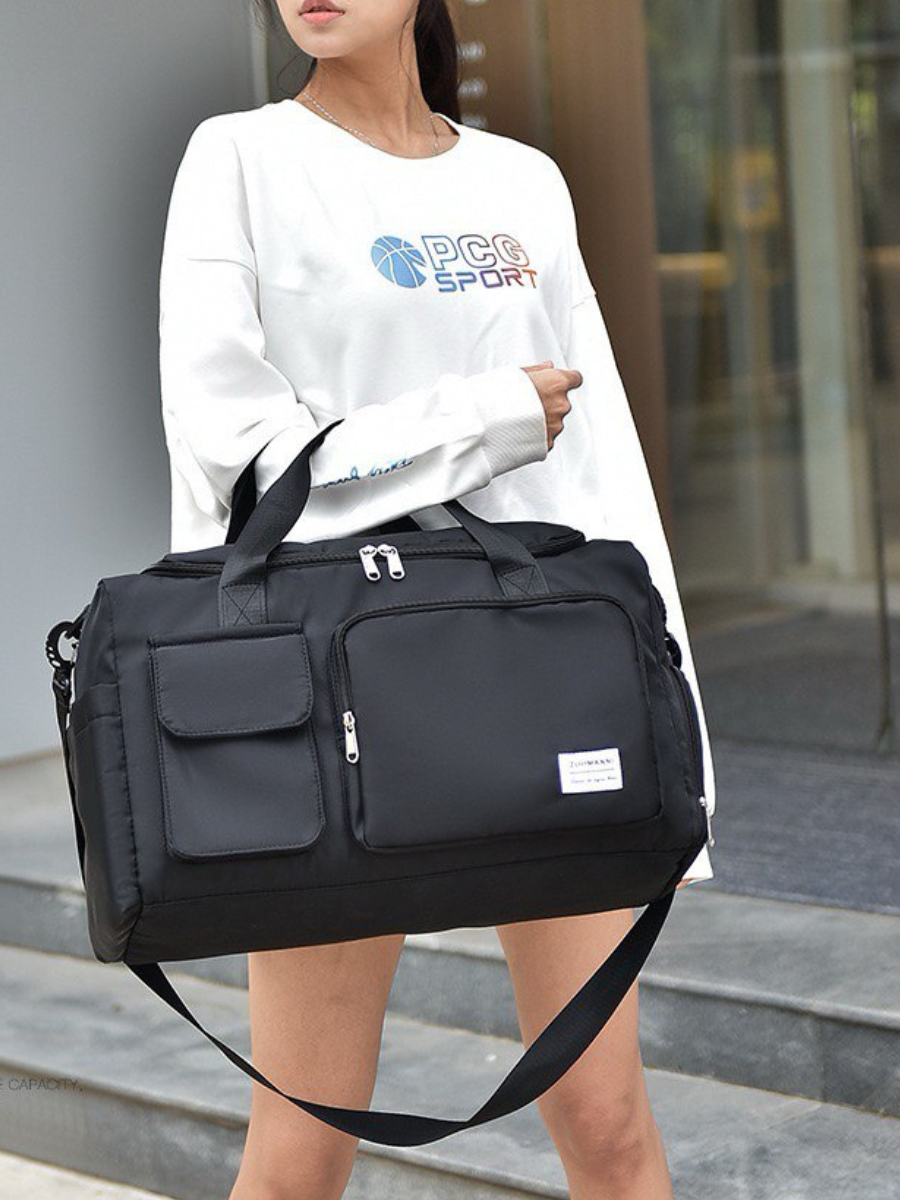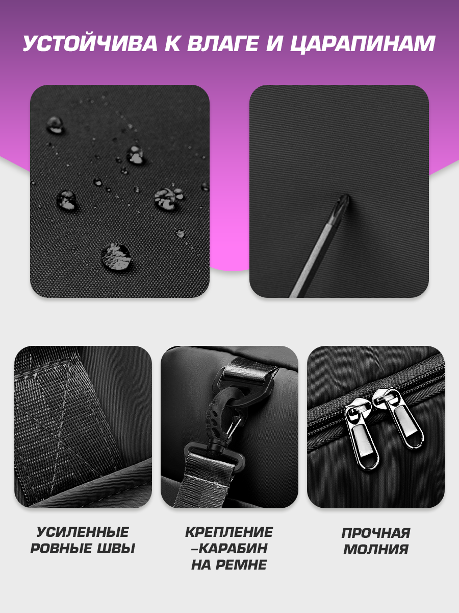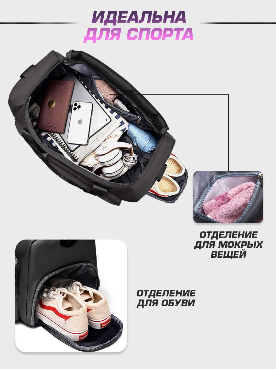 Сумка дорожная спортивная женская чёрная, мужская, ручная кладь в самолёт, для фитнеса и бассейна.