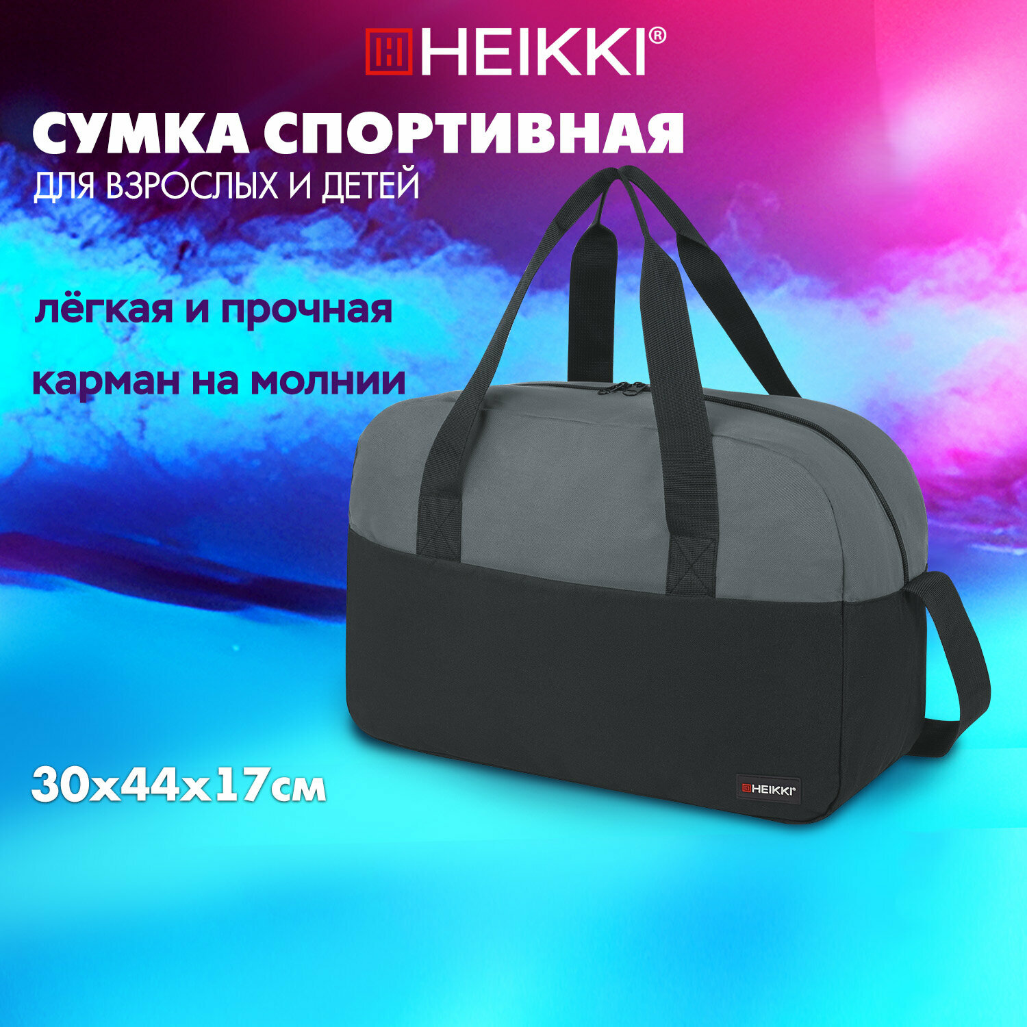 Сумка спортивная HEIKKI, 44х30х17 см, ручная кладь, черный/серый