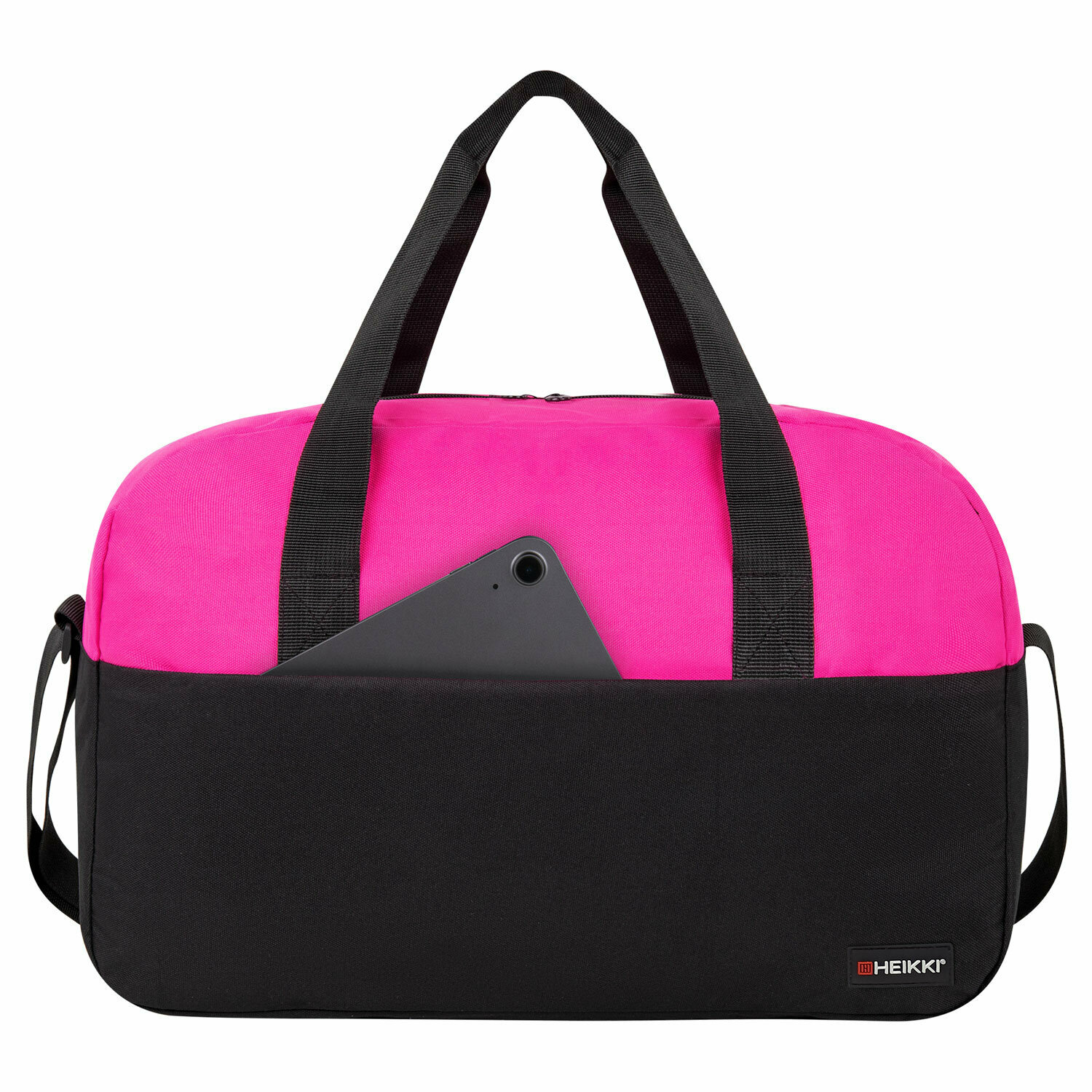 Сумка спортивная HEIKKI BASE (хейки), карман на молнии, черная/фуксия, 30x44x17 см, 272621