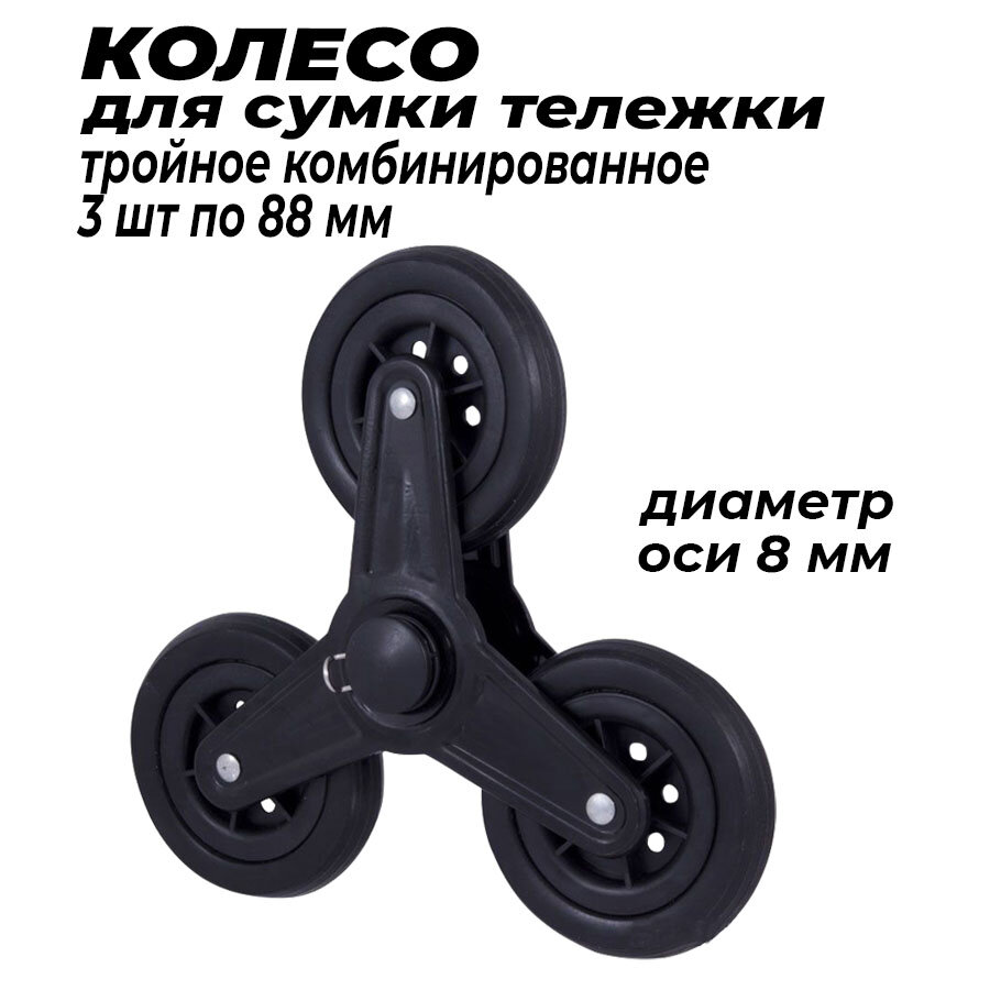 Купить Колесо тройное комбинированное для сумки тележки 3 шт по 88 мм