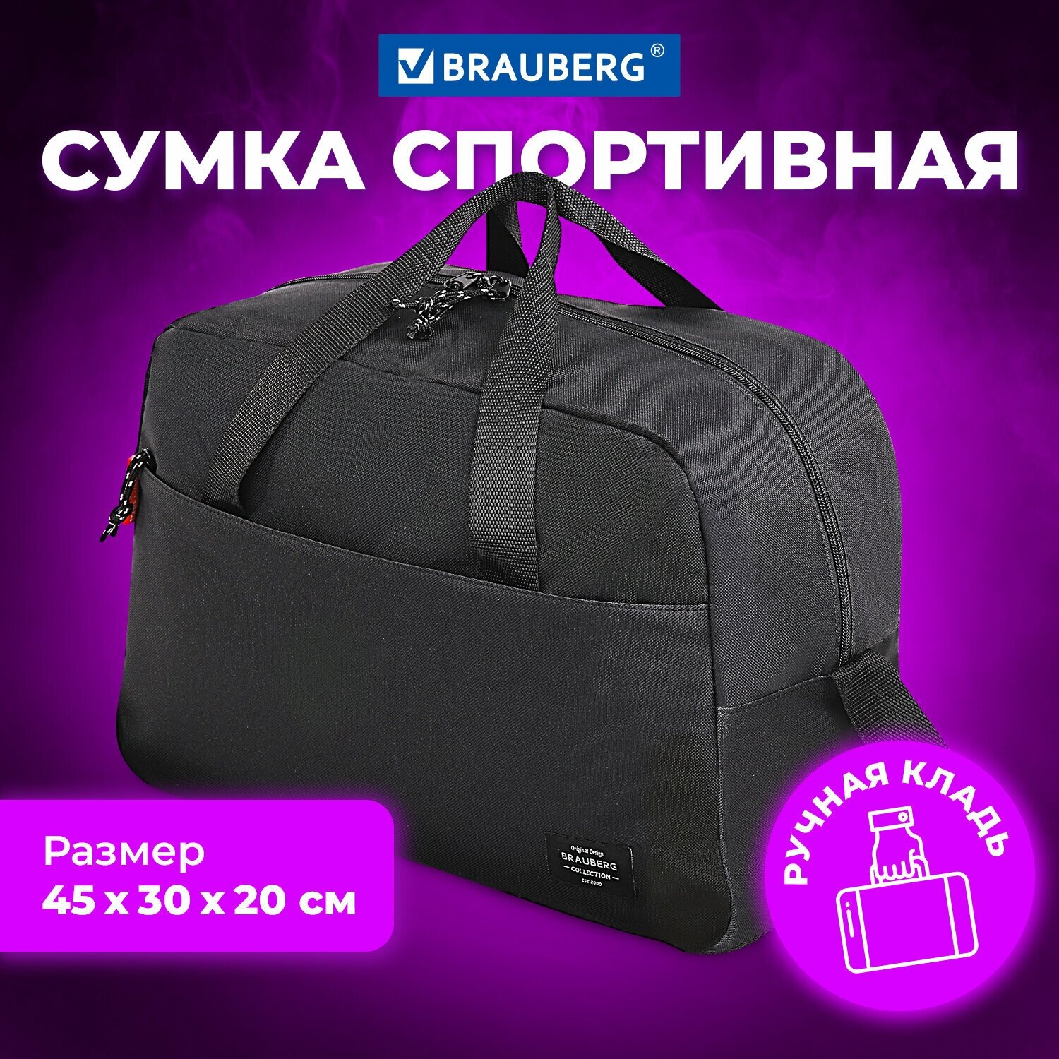 Brauberg Сумка спортивная Move с карманом, черная, 45x30x20 см, 271689 . интересное: