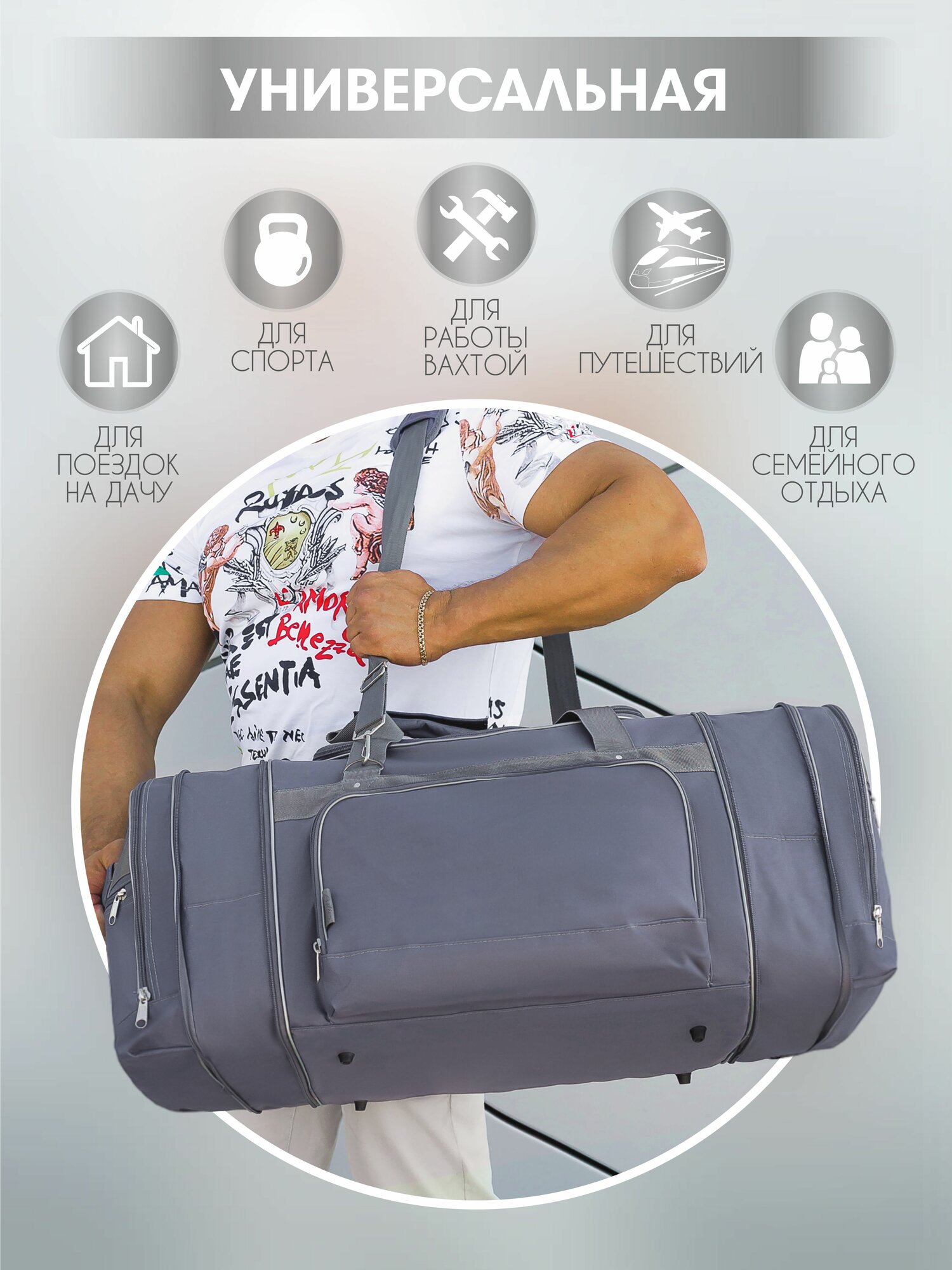 Сумка дорожная большая ArlionPlus, дорожная, 95л серый интересное: