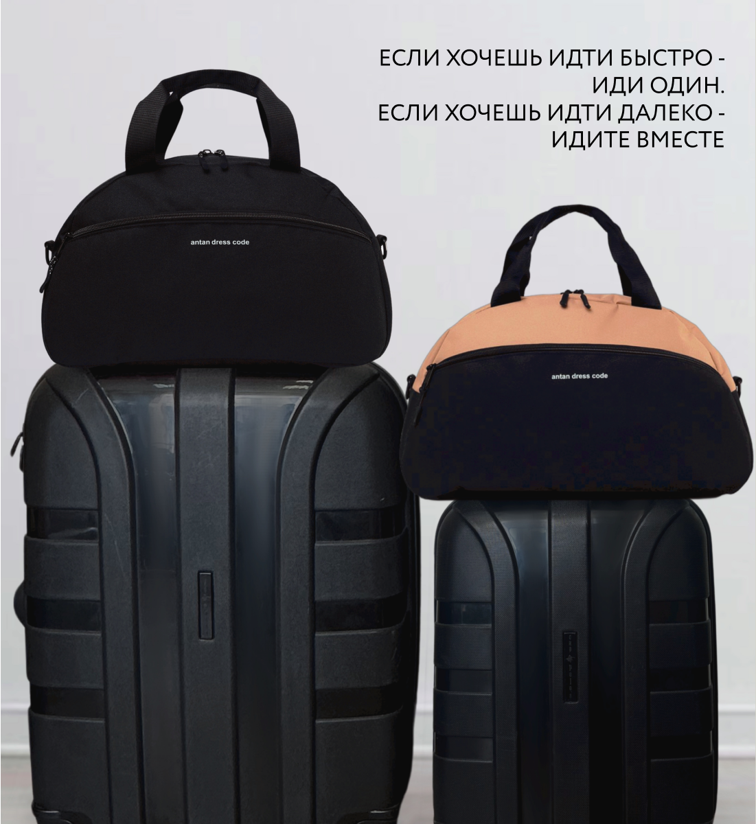 Сумка спортивная женская, мужская, ANTAN 2-322, Текстиль, бежево-черный