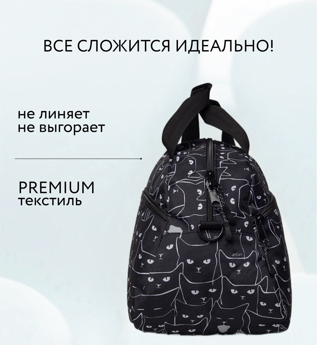 СохранитьСумка спортивная женская, мужская, ANTAN 2-322, Текстиль, коты черно белый интересное: