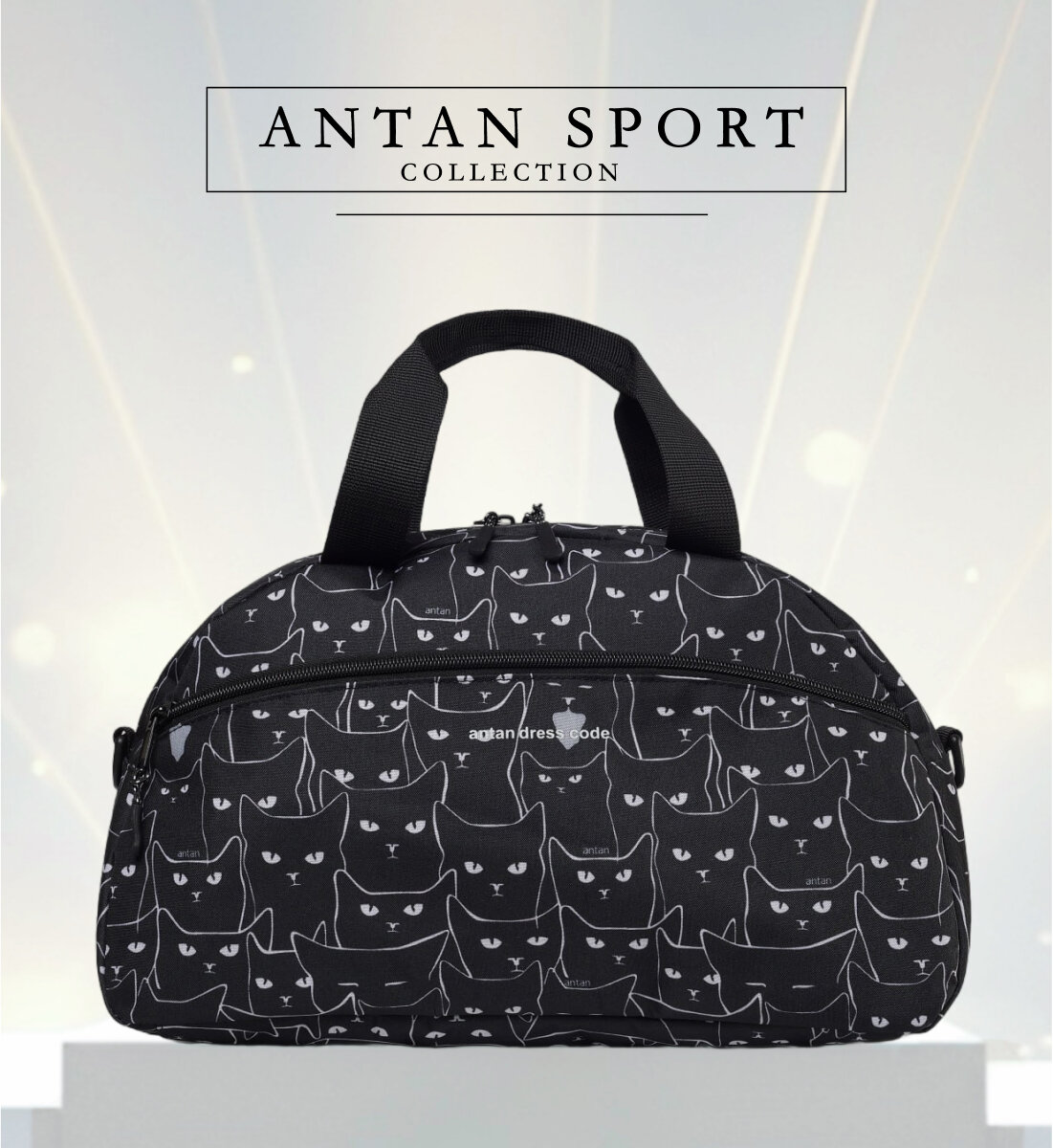 Купить Сумка спортивная женская, мужская, ANTAN 2-322, Текстиль, коты черно белый