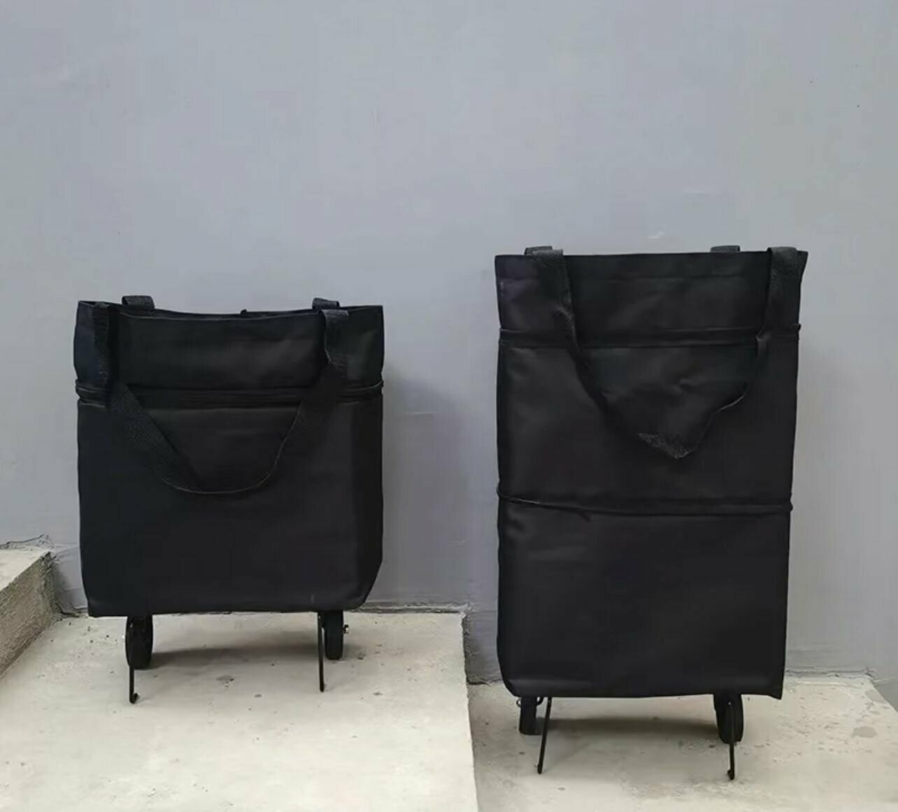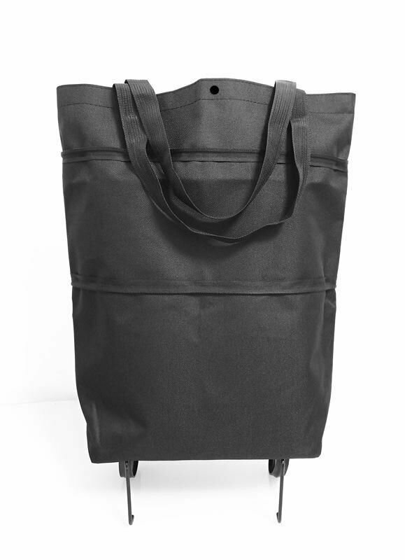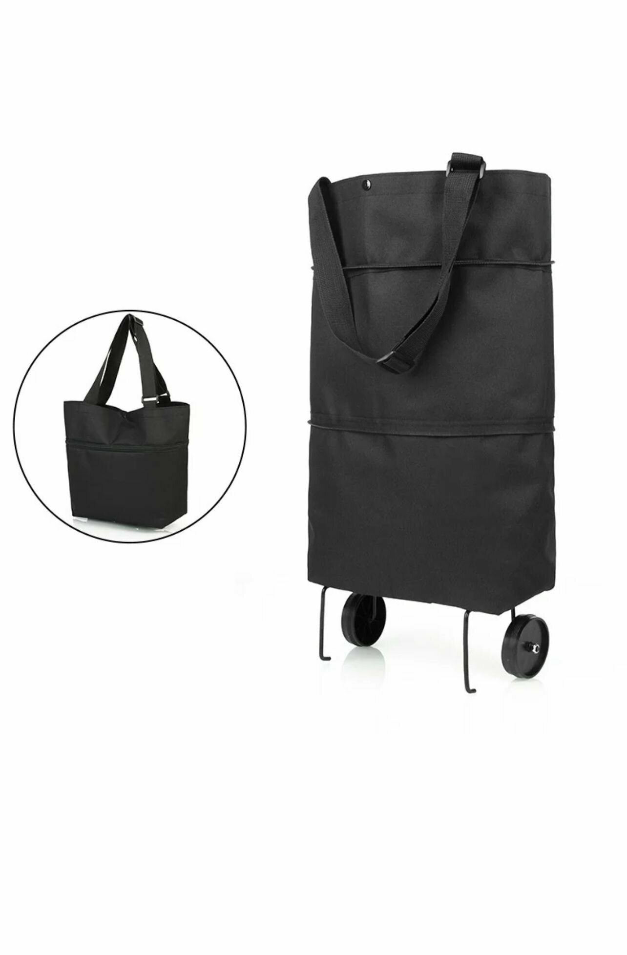 Сумка на колесах хозяйственная складная черная / без подклада / с расширением интересное: