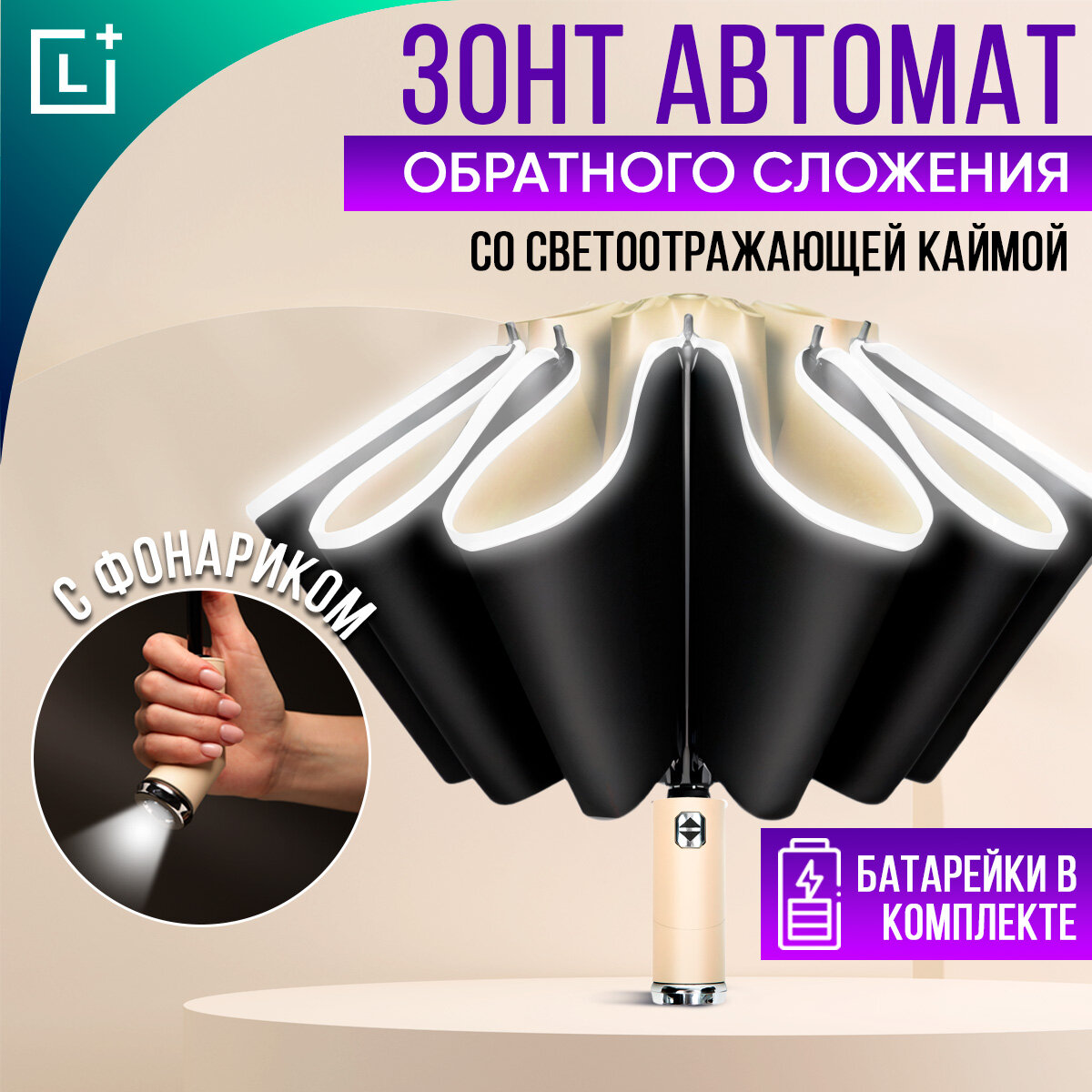 Зонт автомат обратно сложения Leomax, зонт наоборот с системой антиветер, бежевый интересное: