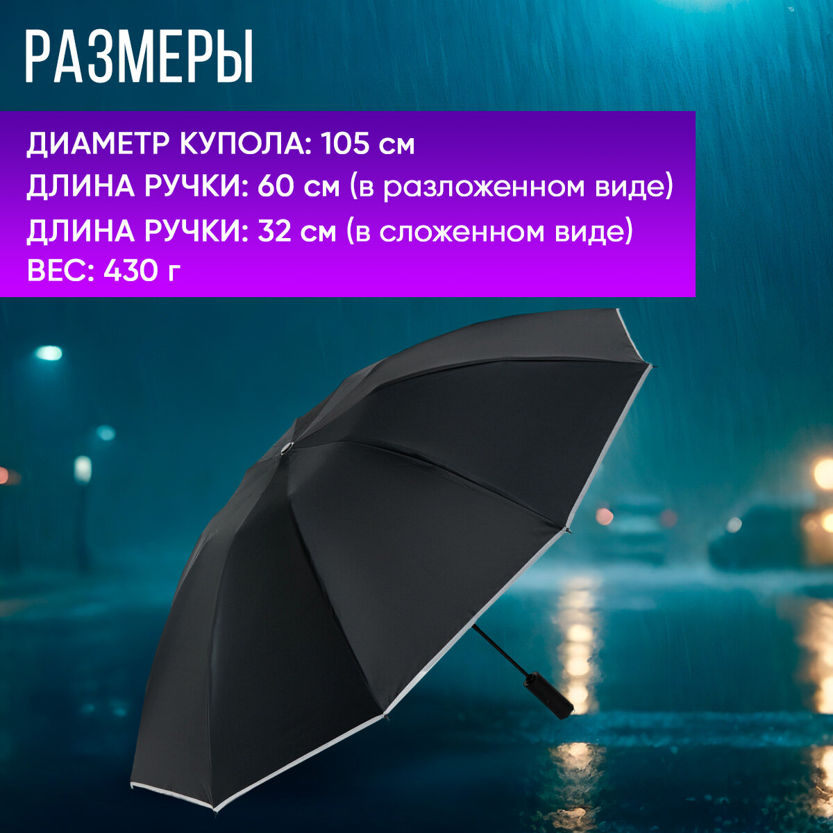 | Особенности модели | обратное сложение, с фонариком, светоотражающие элементы, система «антиветер», чехол в комплекте |