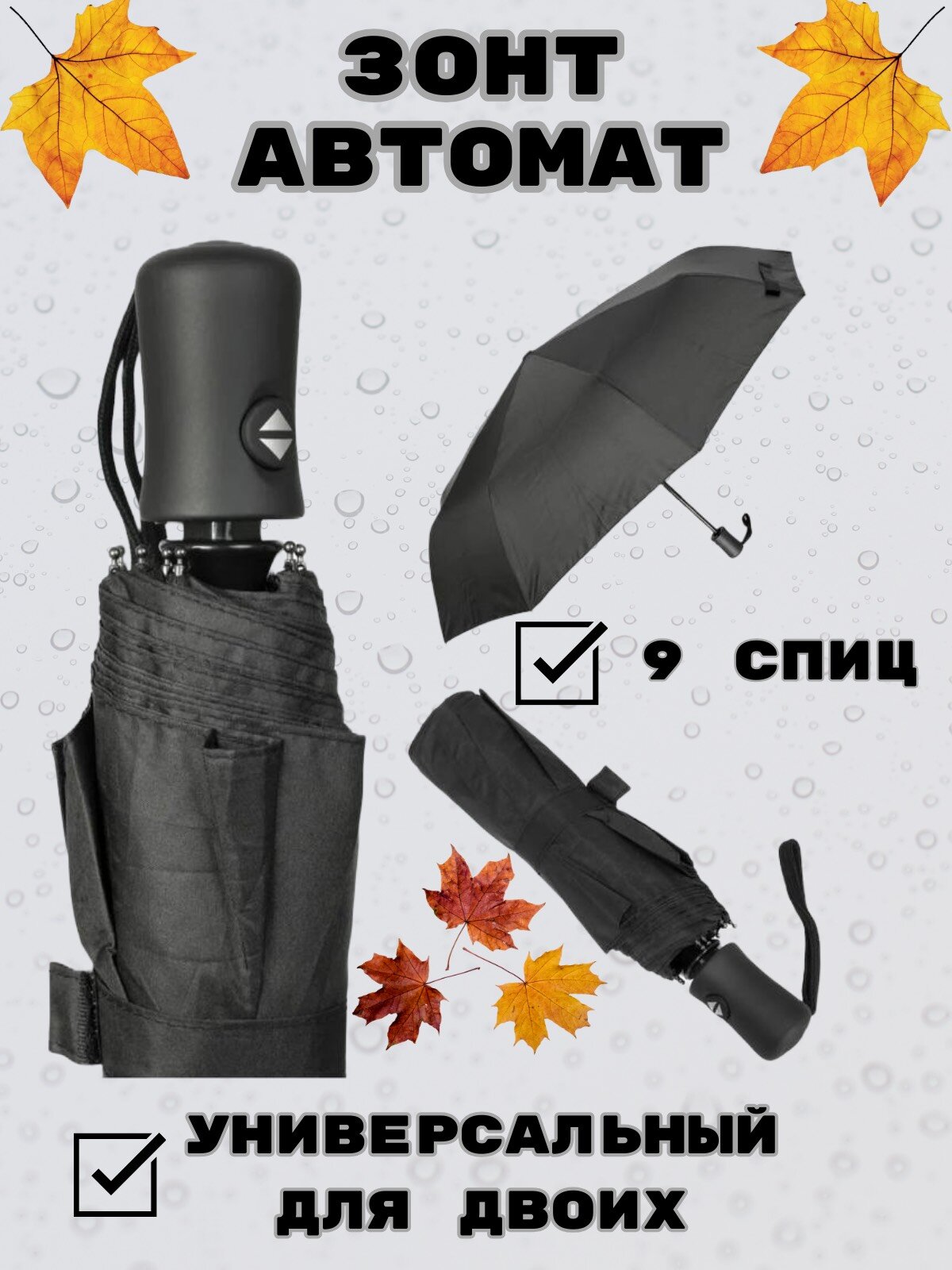 Зонт автомат, купол 96 см., черный интересное: