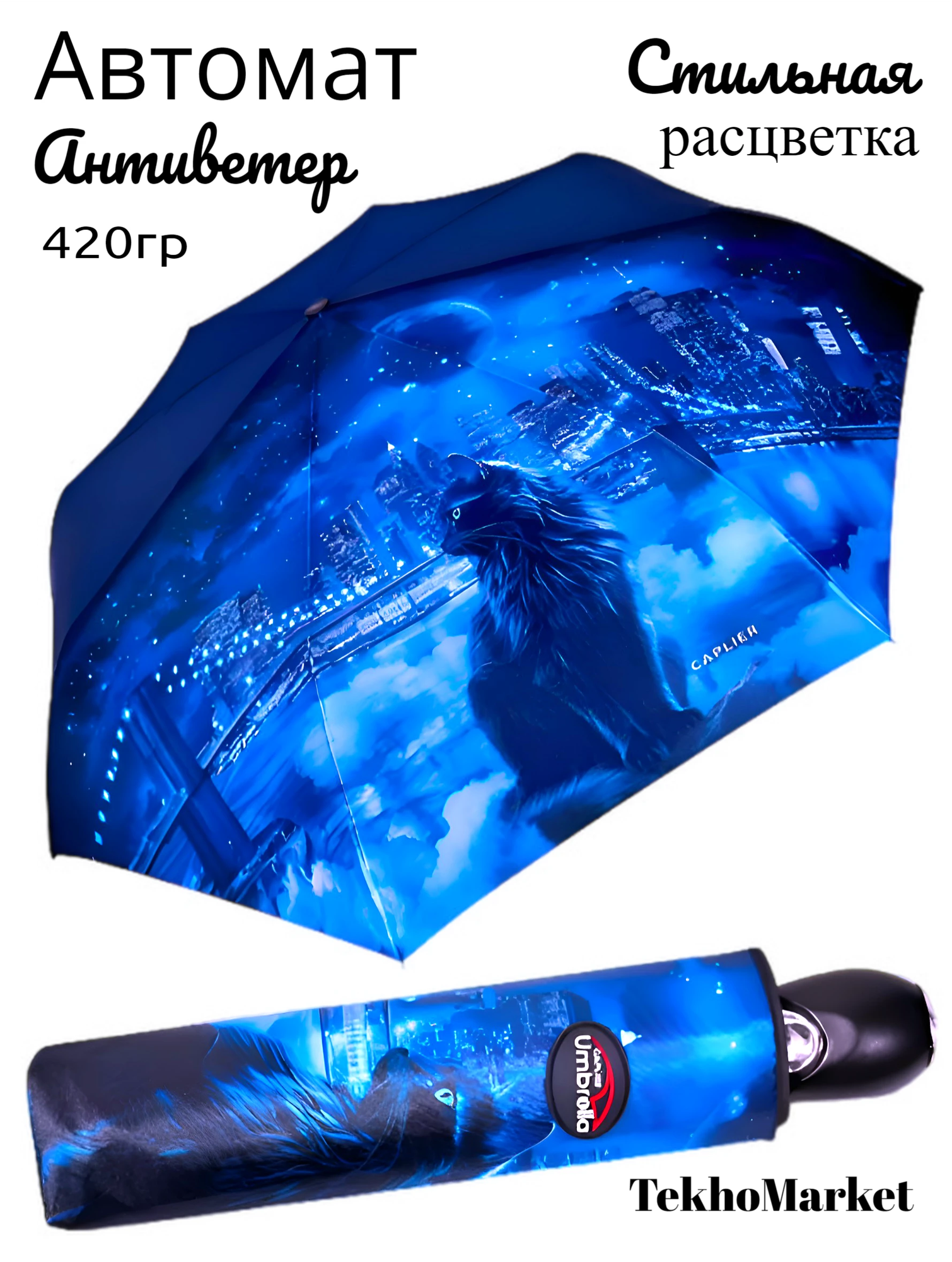 Зонт женский с котом Caplier, Blackcat интересное: