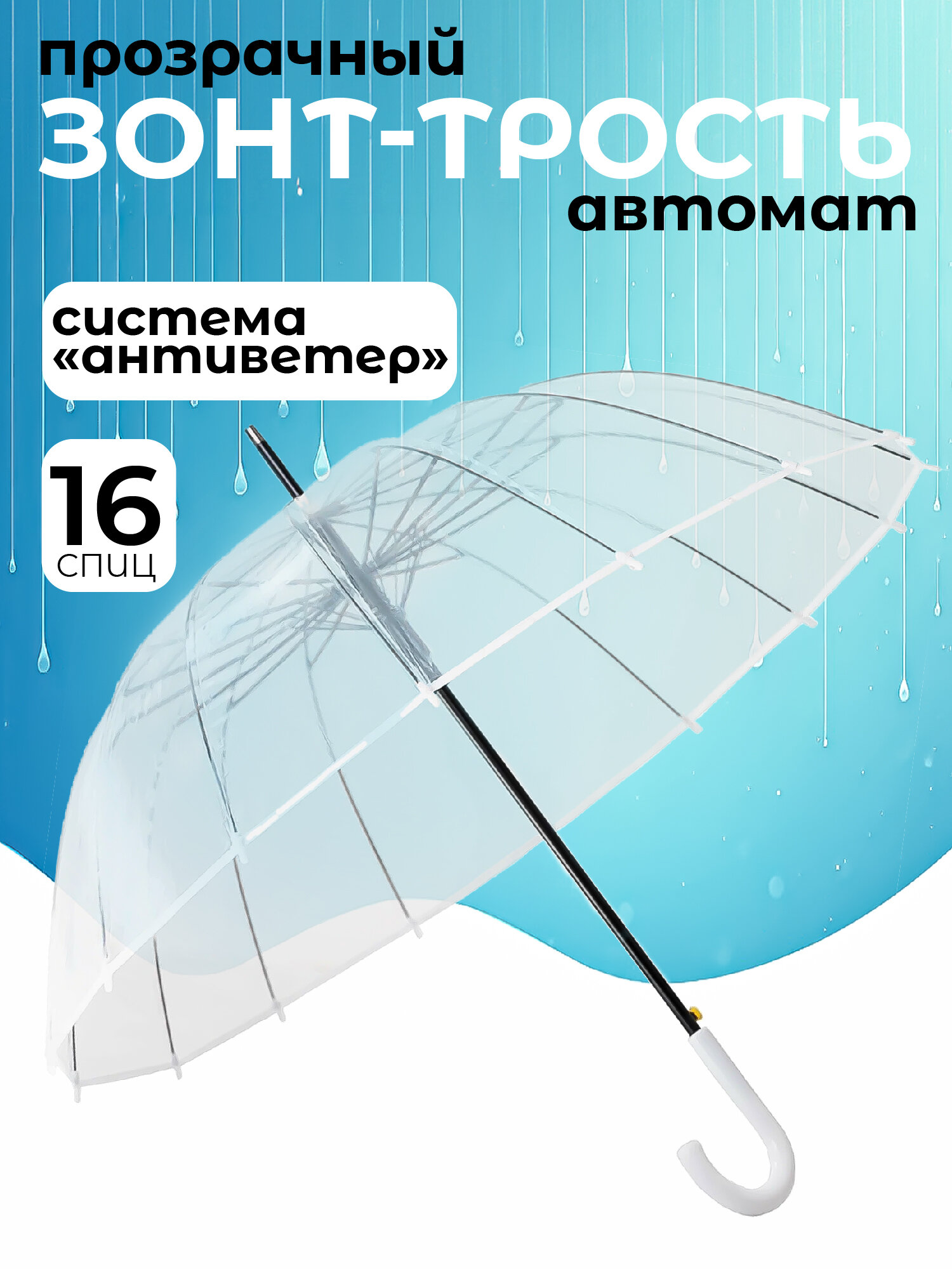 Прозрачный складной зонт автомат -трость, 16 спиц с белой кромкой интересное: