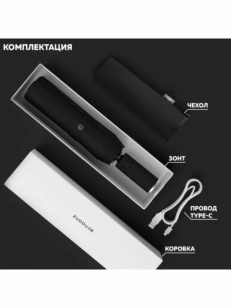Смарт-зонт ZUODU, автомат, купол 105 см., 10 спиц, система «антиветер», с фонариком, черный интересное: