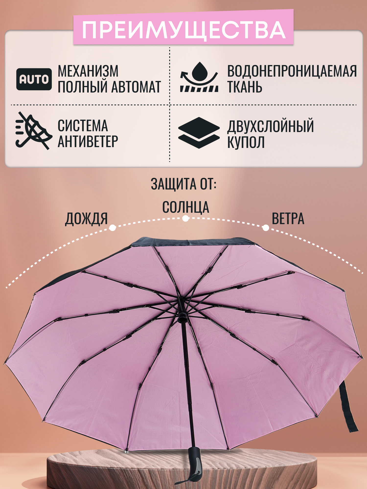 Зонт двухслойный автомат антиветер складной интересное: