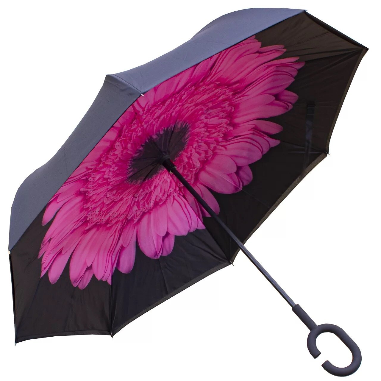 Купить Умный зонт-наоборот механический "Розовая хризантема" с обратным механизмом, 1шт