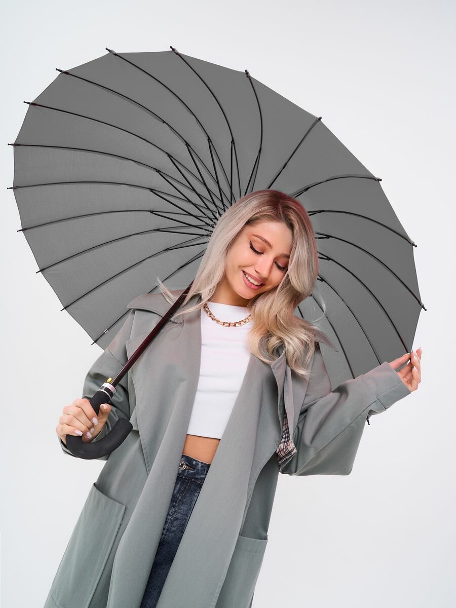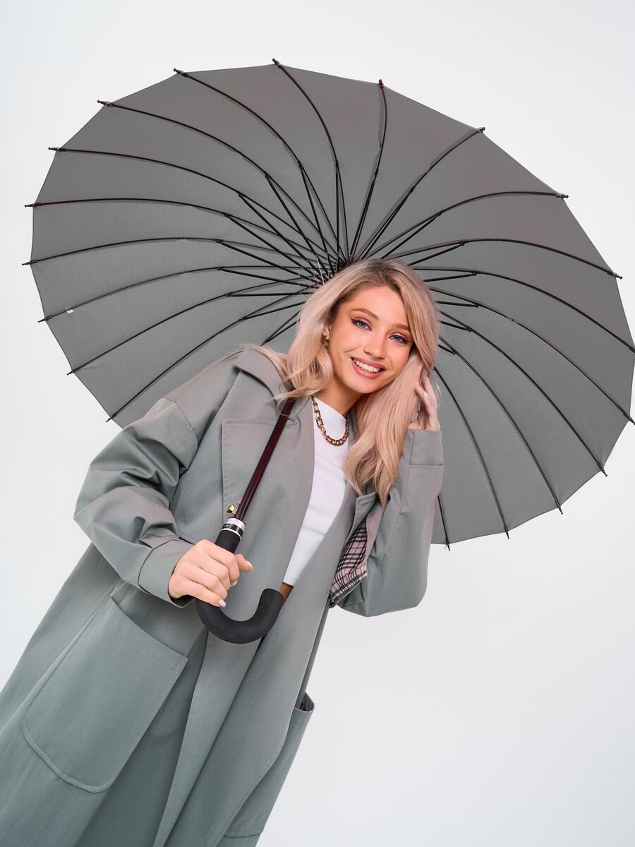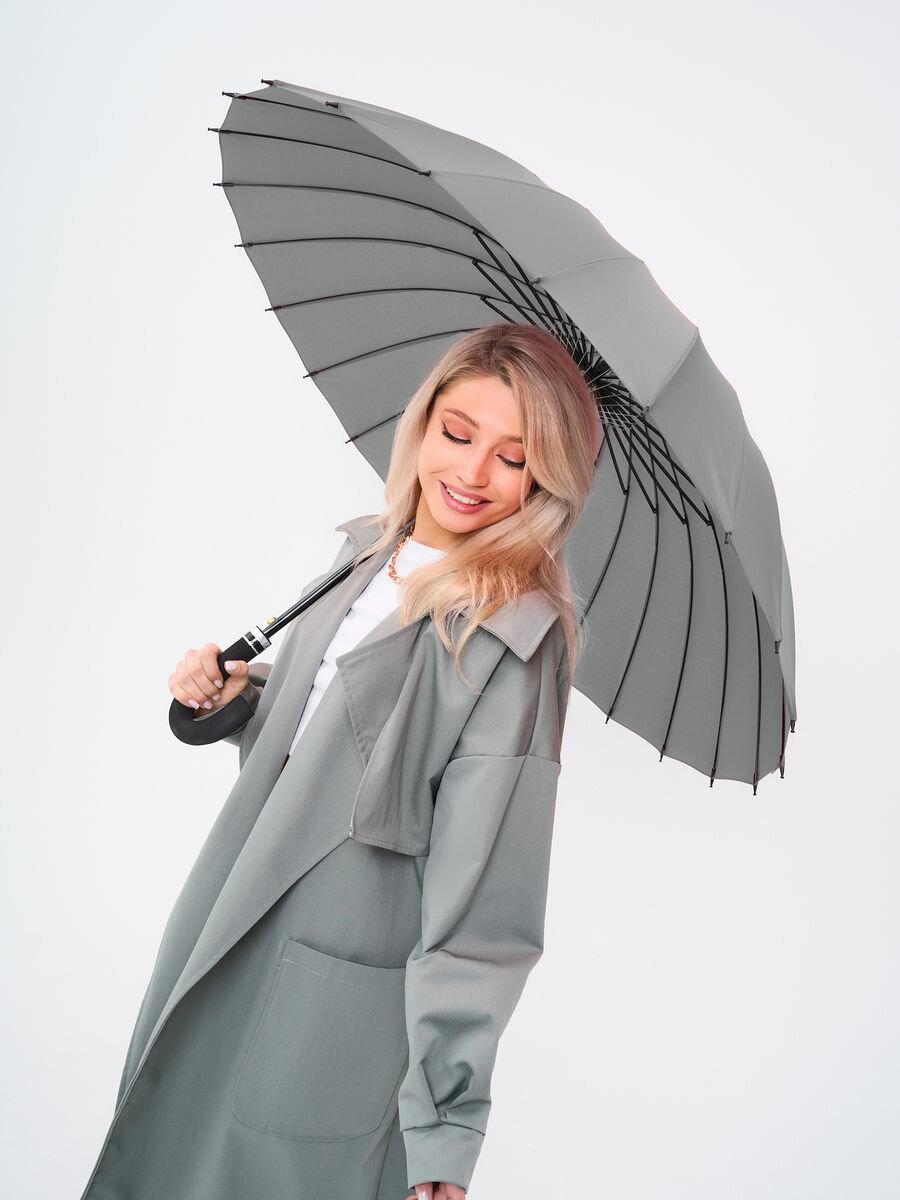 Зонт трость серый 24 спиц интересное: