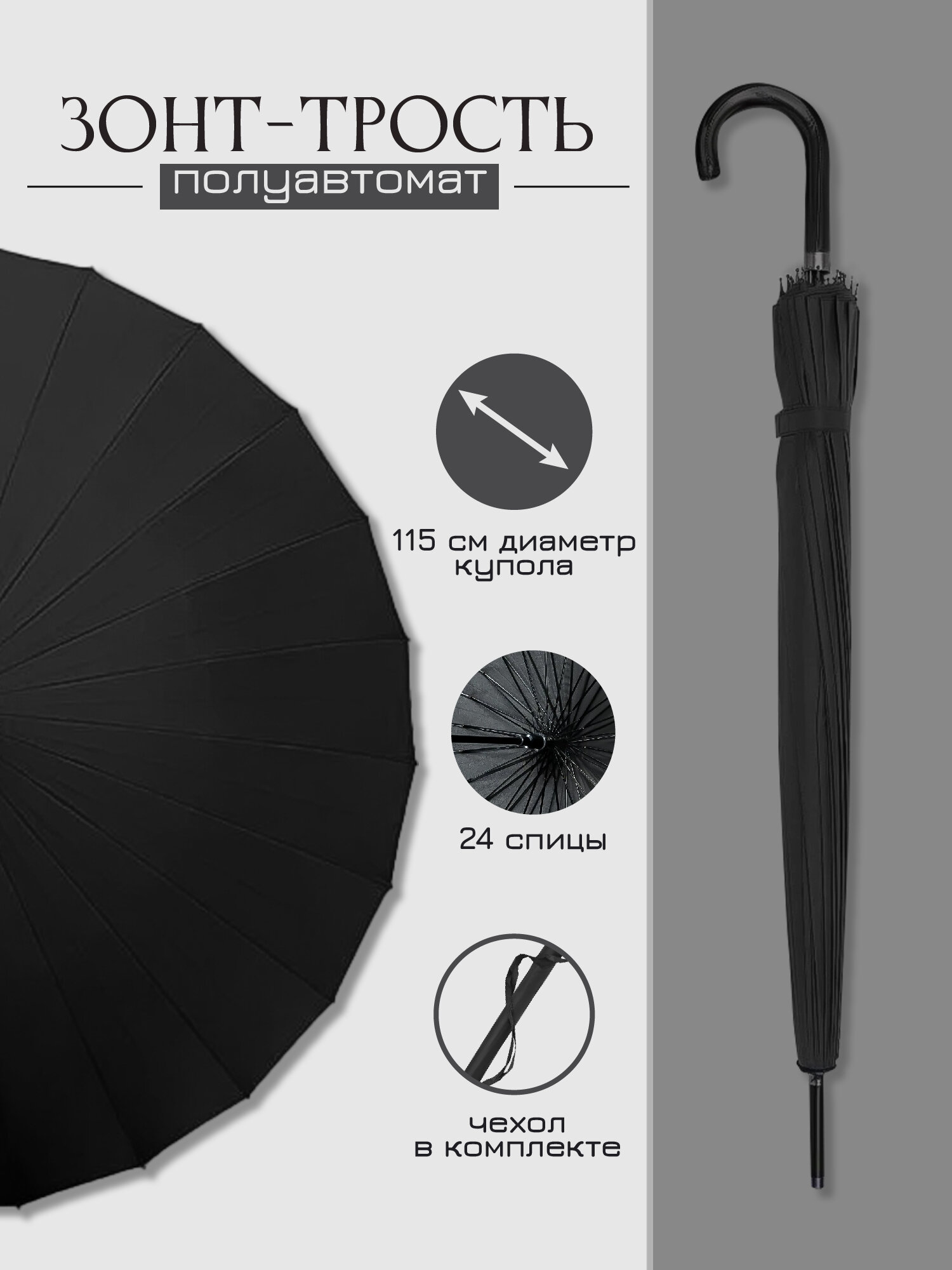 Купить Большой мужской зонт трость/диаметр купола 120см, 24 спиц, ручка кожаный крюк, Черный