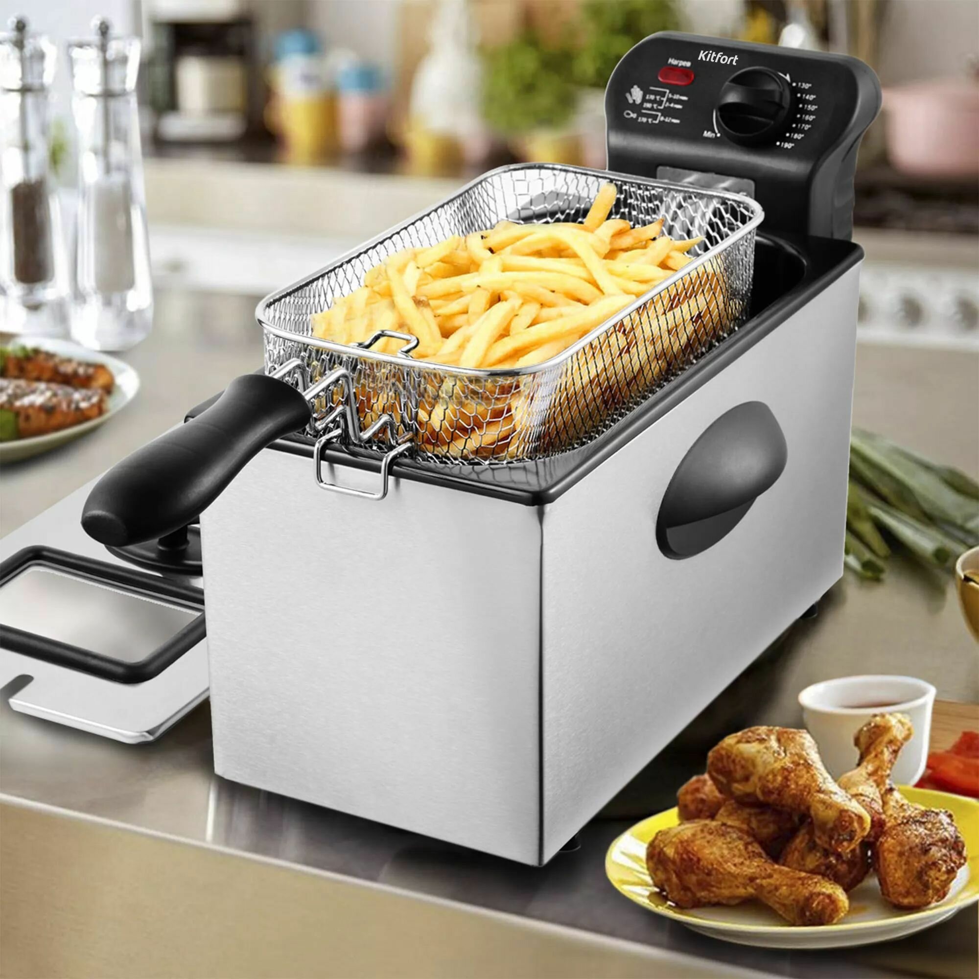 Довольно частно делаю крылья аля кфс, корочка хрустящая, всё как надо. Масла уходит много, объём достаточно большой. Вообще много техники китфорта дома, недорогая и вся на неплохом уровне))) мы в восторге. |
