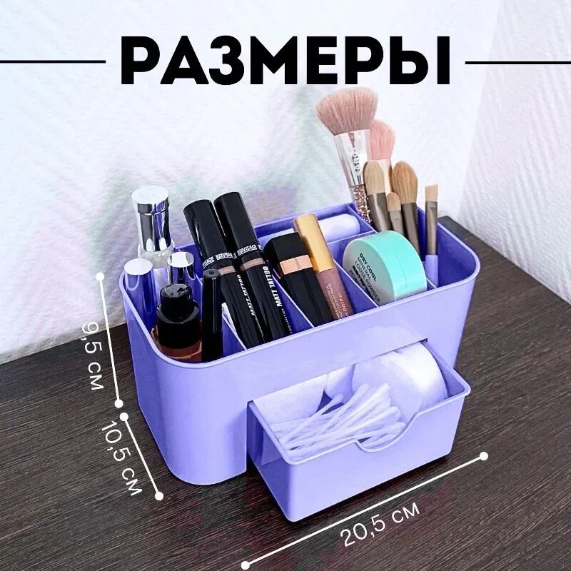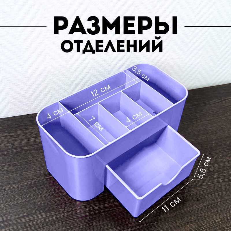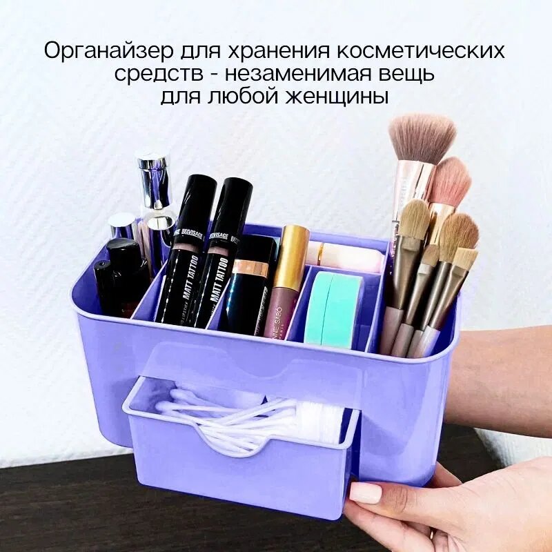 Купить Универсальный органайзер CANBI для хранения косметики и канцелярии с выдвижным ящиком, фиолетовый