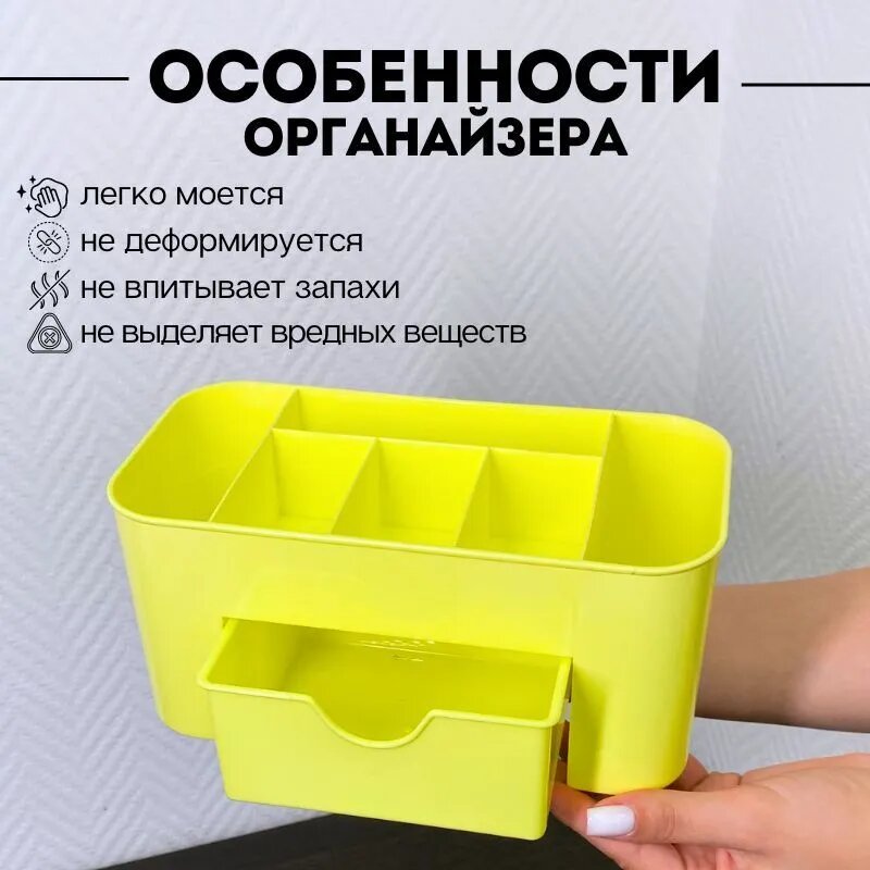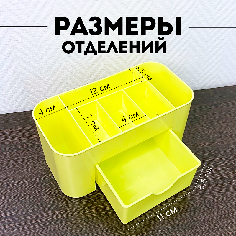 Купить Универсальный органайзер CANBI для хранения косметики и канцелярии с выдвижным ящиком, желтый