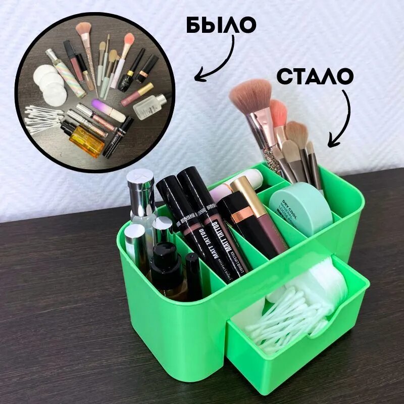 СохранитьУниверсальный органайзер CANBI для хранения косметики и канцелярии с выдвижным ящиком, зеленый интересное: