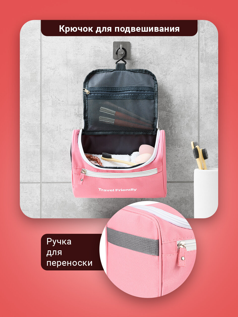 Купить Косметичка дорожная, Travel Friendly, Сумка косметичка с отделениями на молнии/ Несессер дорожный, Розовый
